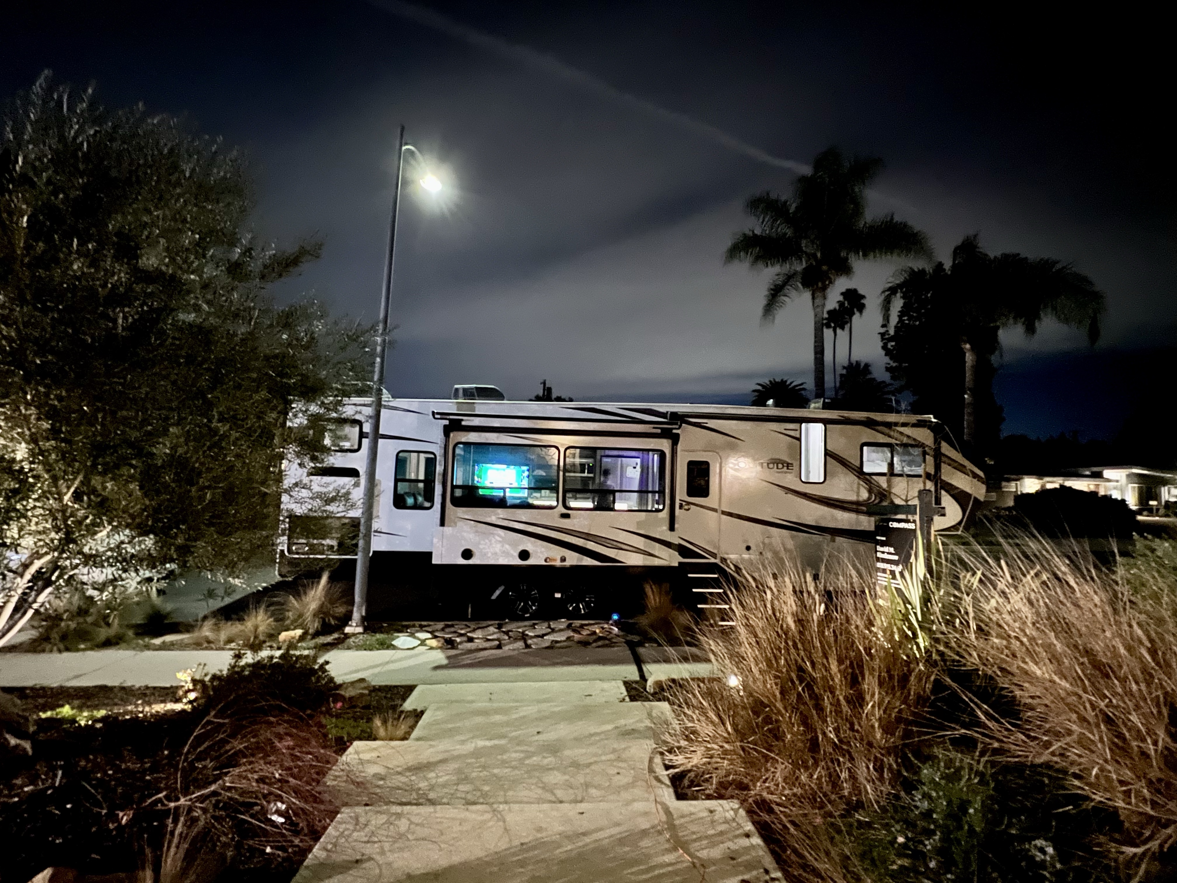 Once it was all over, it was time to officially say goodbye. We cried, & it was sad and ugly. Neighbors waved us goodbye as we drove down our street for the last time – they and we were in tears. It was 5:30 pm. (Our plan was to leave at noon.) Our first stop was the KOA in Santa Paula. We’d be arriving in the dark, after the office had closed.