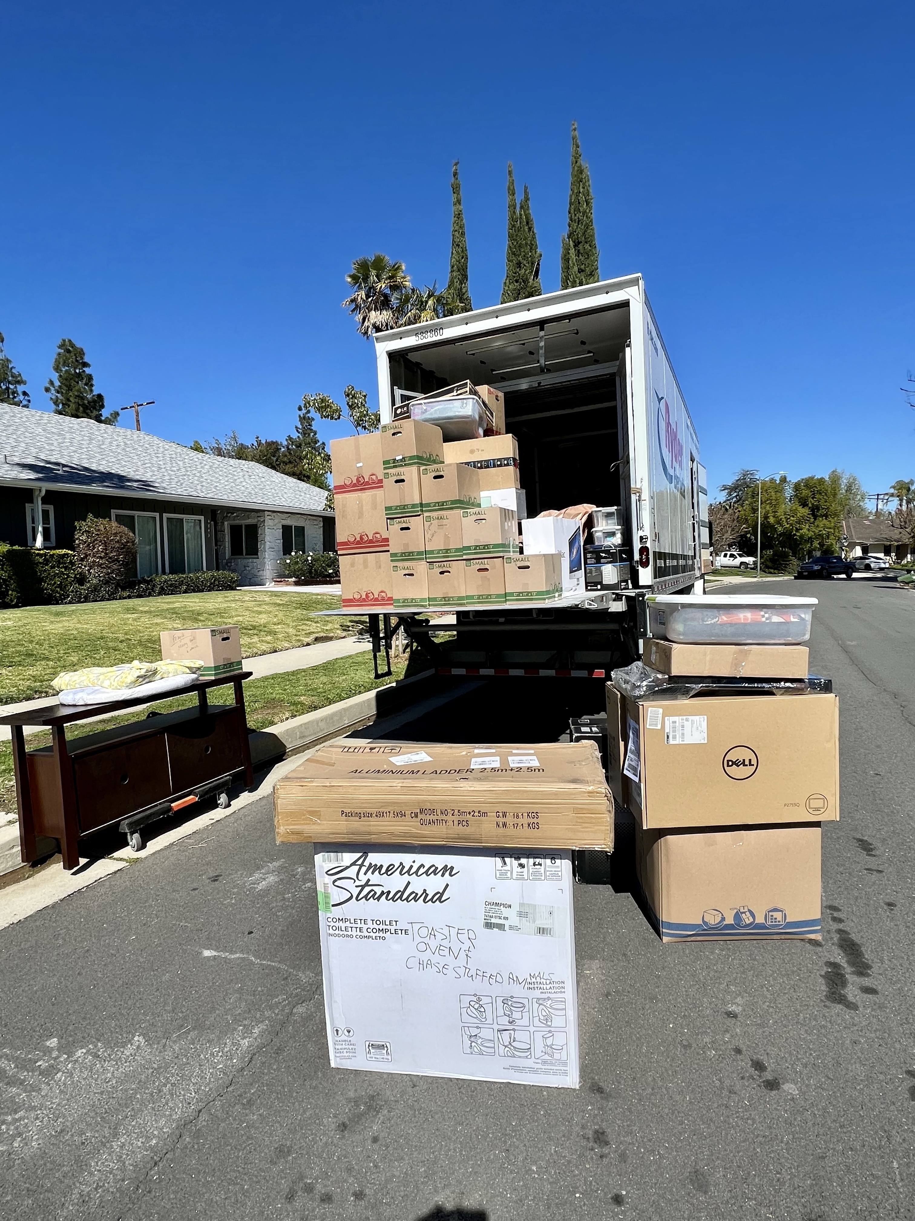 From the time we landed back in LA until we had to move out, we had 10 days. It was a blur of tearing-down & packing one life while starting a totally different one. Reality set in, having our new home parked in front of our soon-to-be old home.