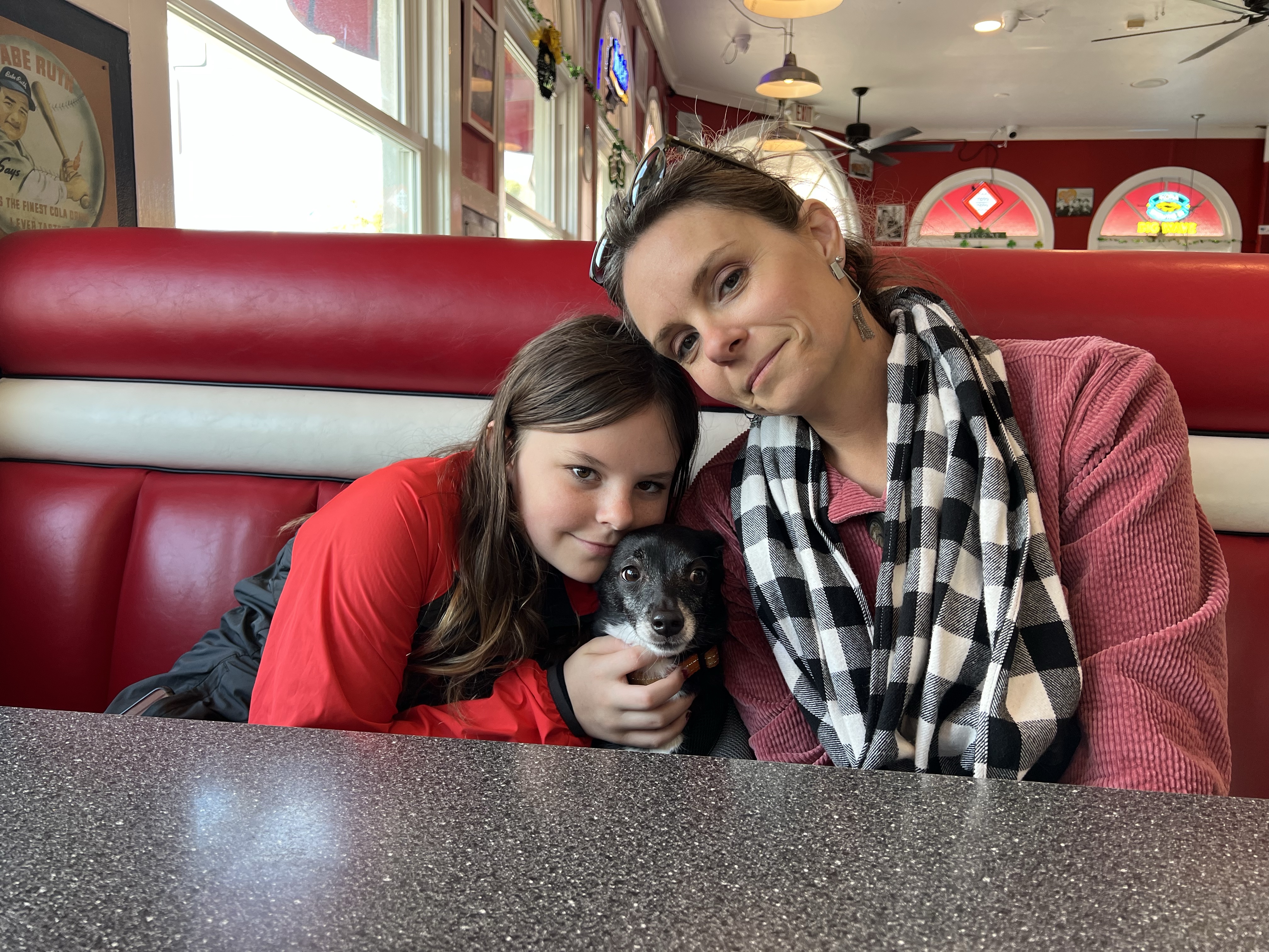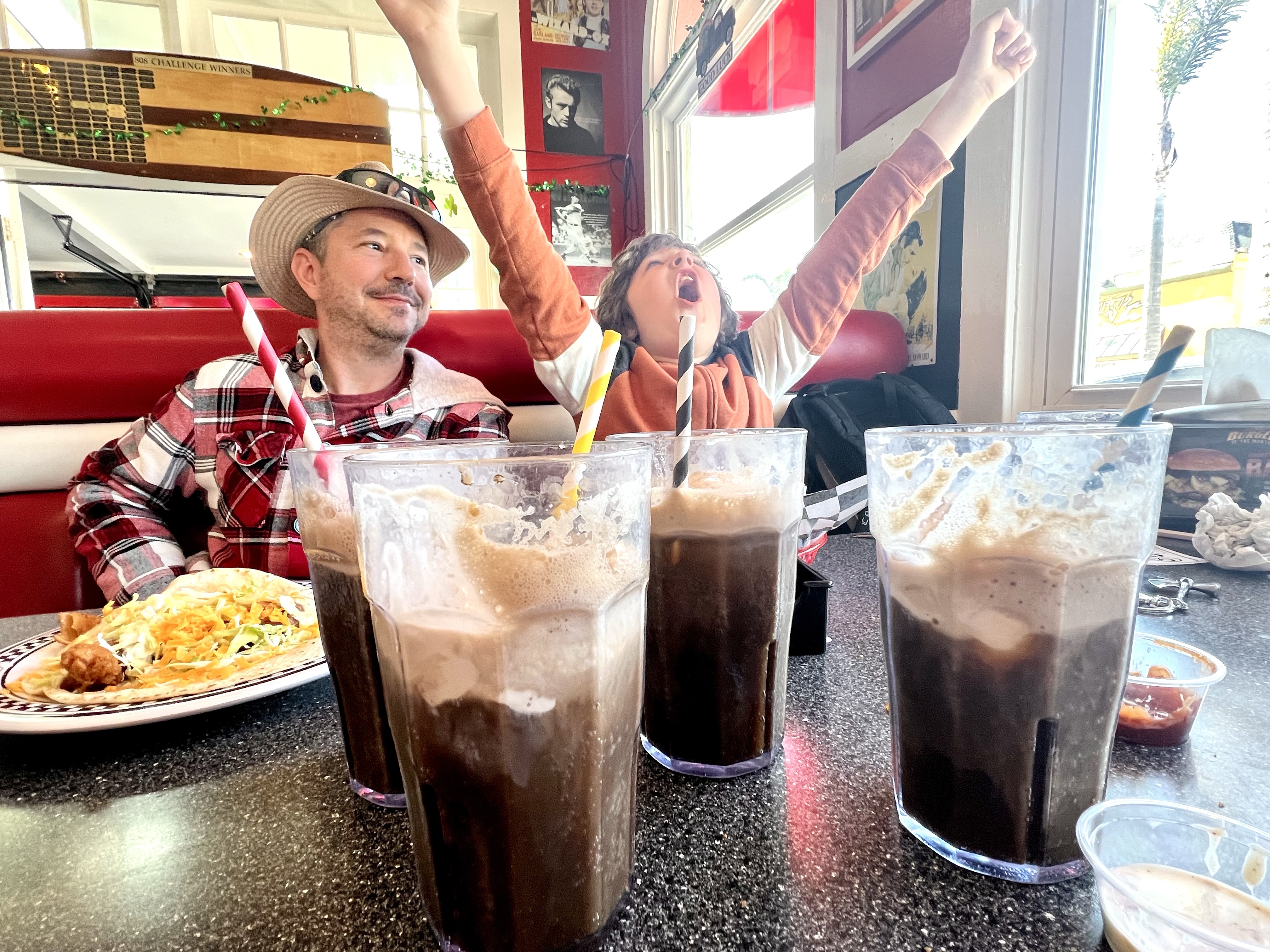 The Cool Cat Cafe is a 50’s style diner, & they welcomed us in, even with Stout. The food was yummy, & the free root beer floats didn’t disappoint!