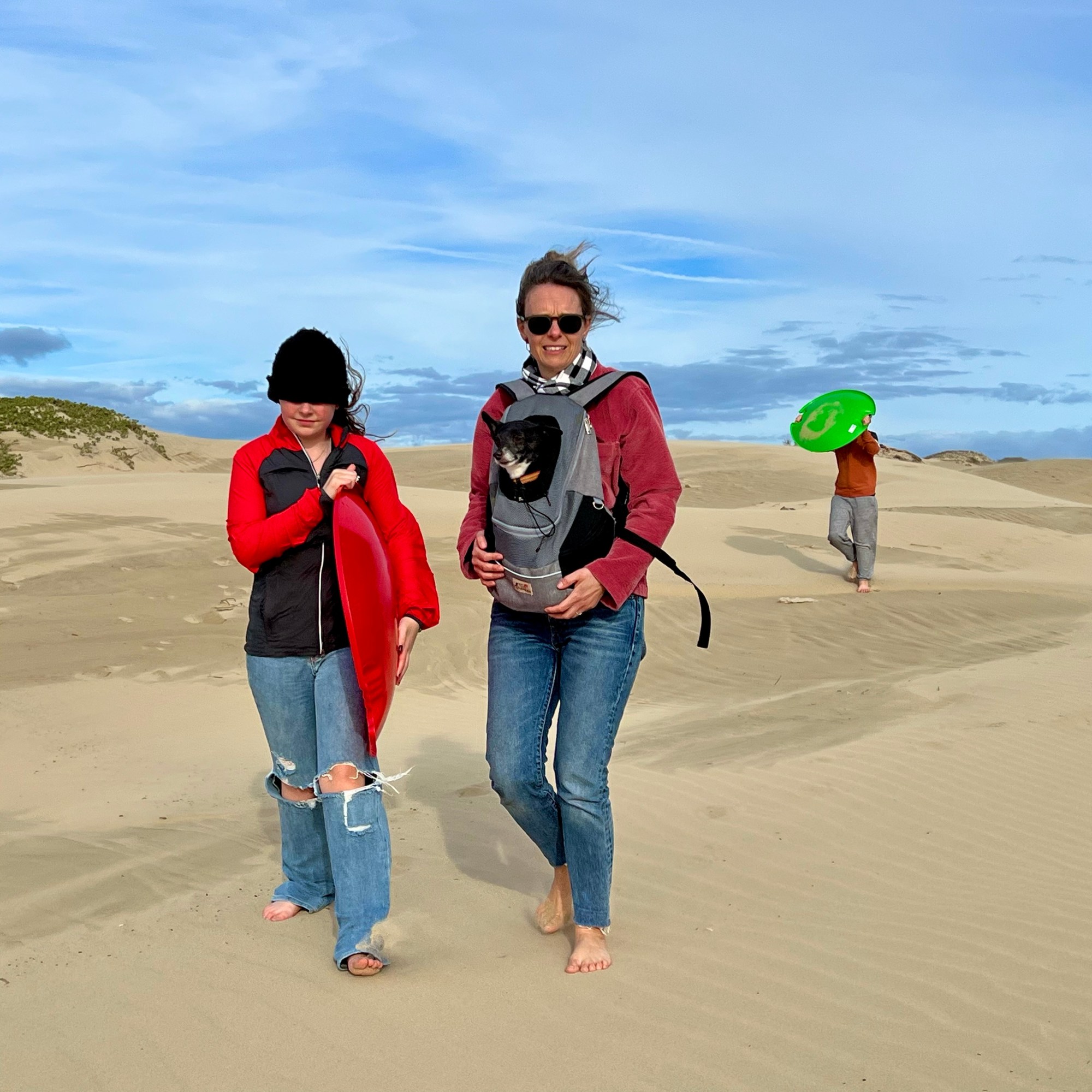 Joe and I sand sledded on the dunes of Cape Cod on our honeymoon!!! Did the whole dune buggy ride thing… there is nothing like it!!! It was chilly, but no “Grapes of Wrath” dust/sandstorm like you guys pushed through!