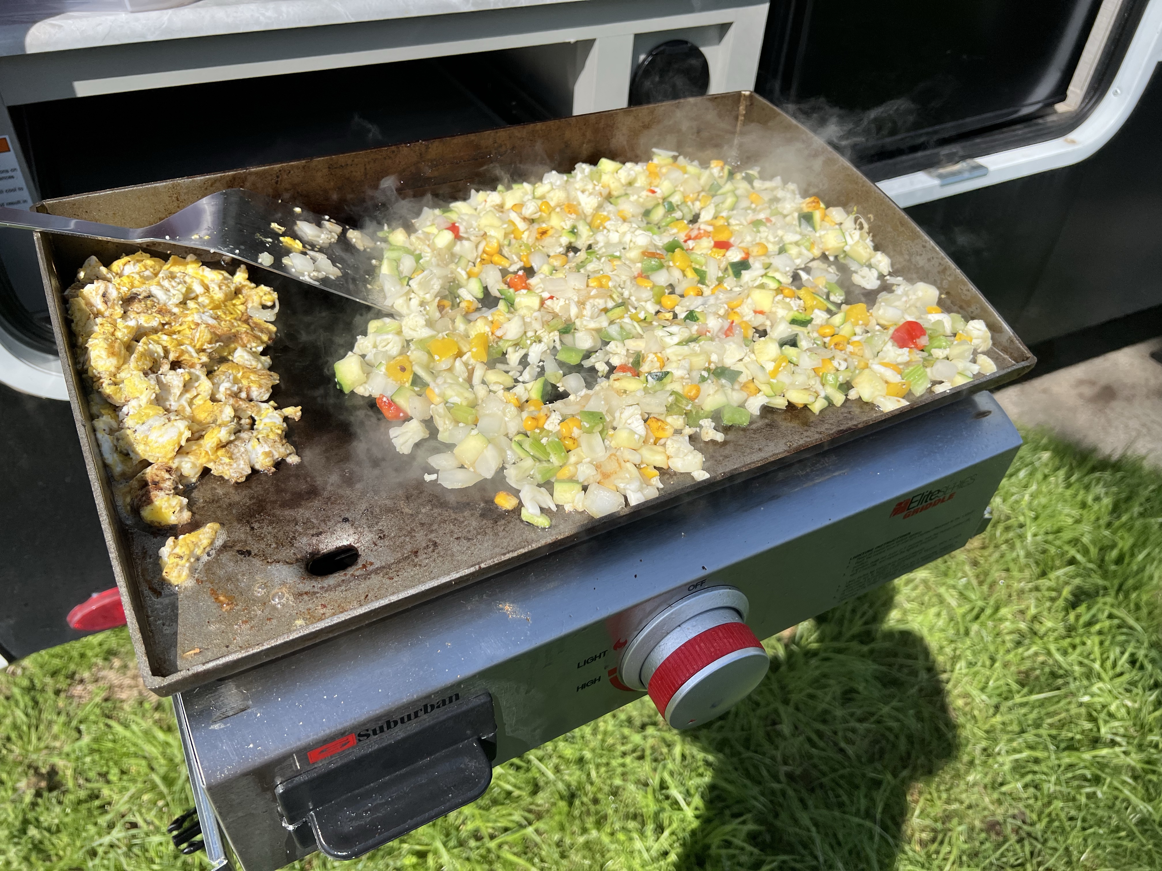 We had a couple slow mornings, making breakfast on the griddle & playing frisbee.