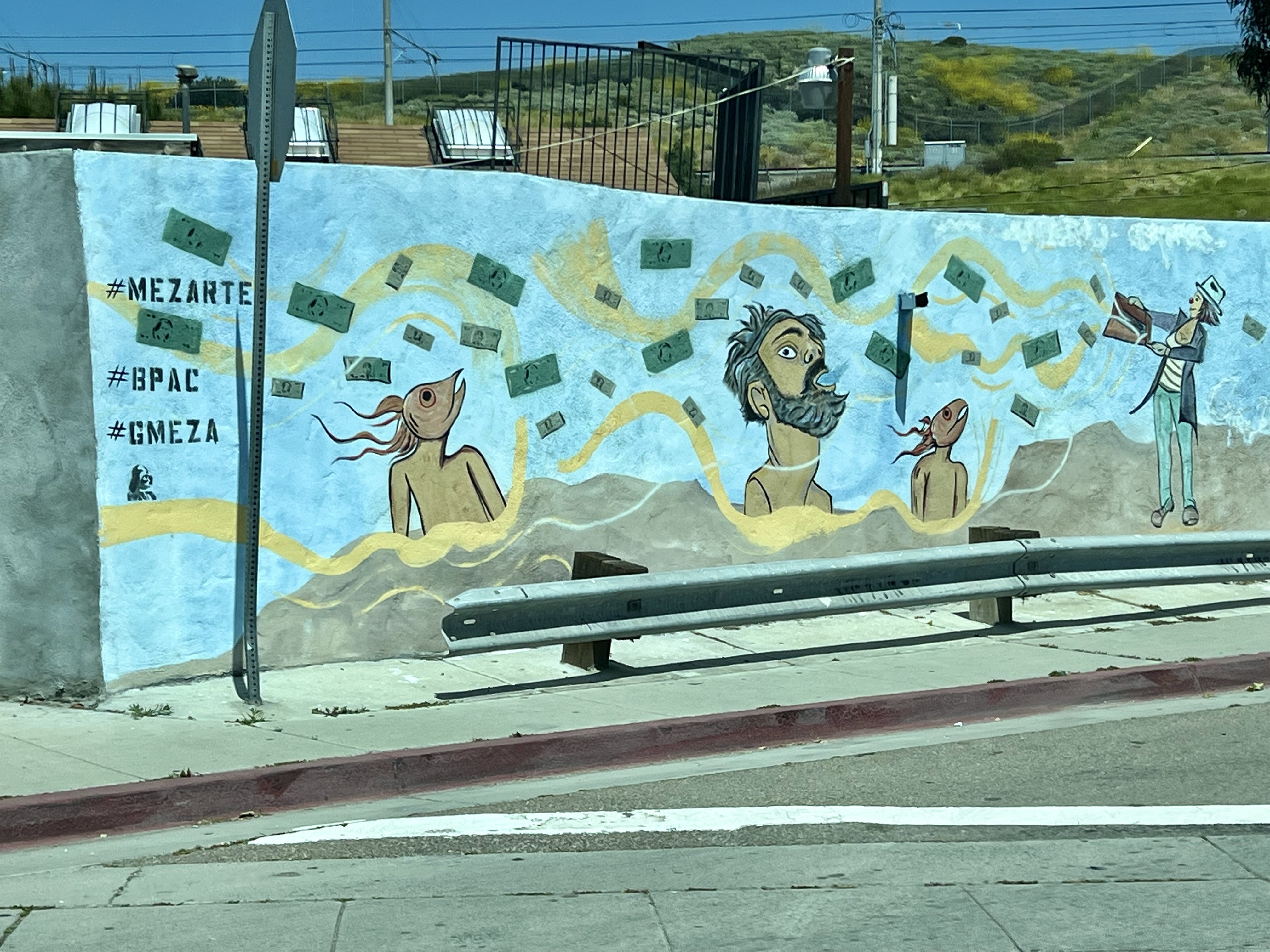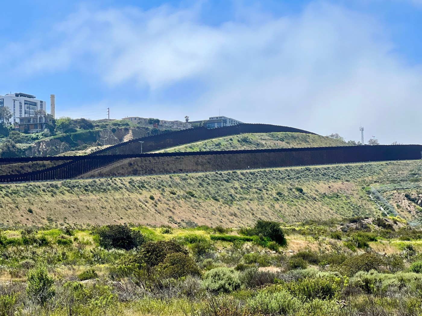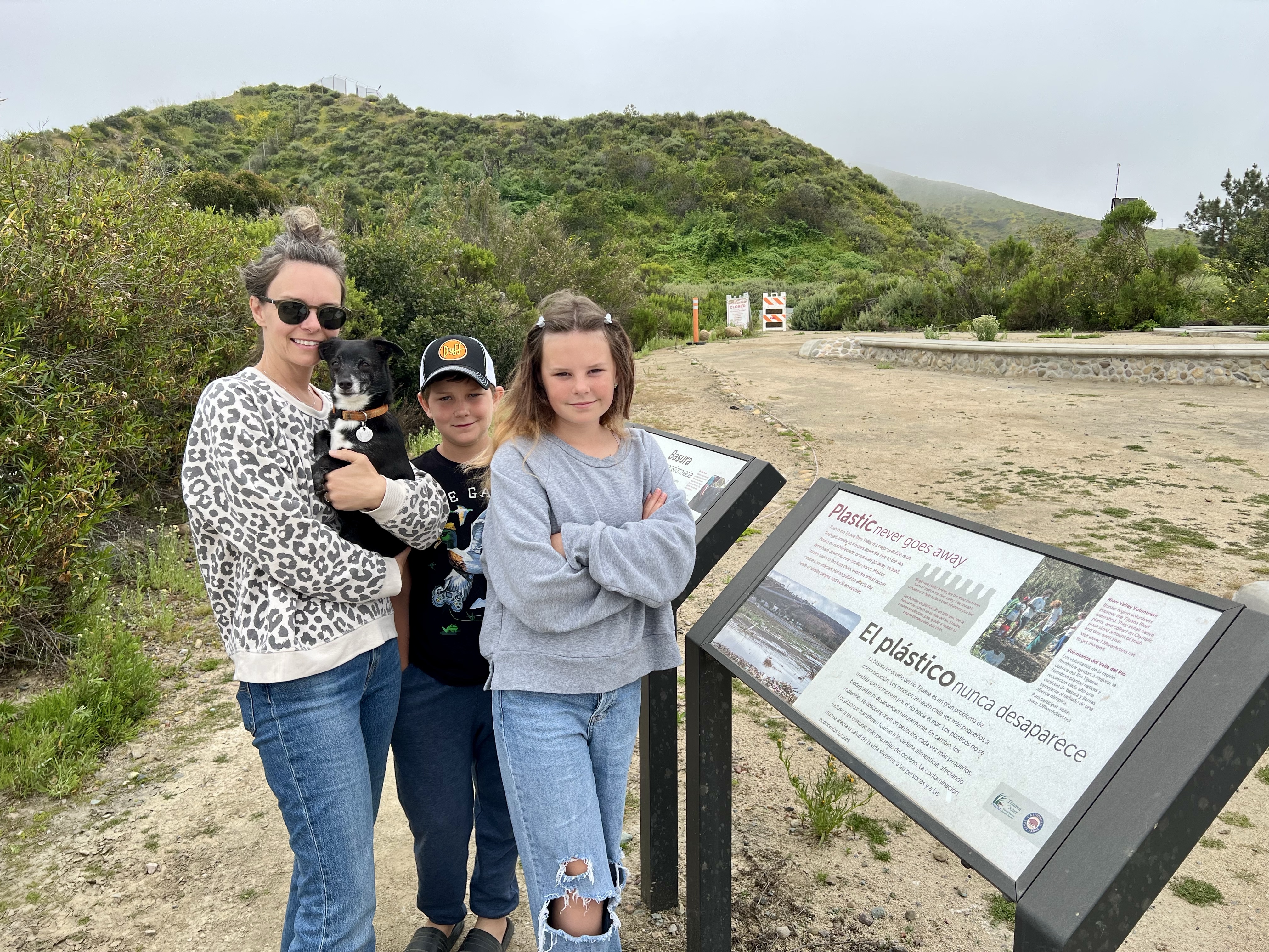 The roads leading to the campground were so narrow, & some were still covered in water or sand from the previous rains. But it was so beautiful & peaceful! The road eventually dead-ended at the Border Field State Park – which was closed. Along the way, we caught glimpses of the wall cutting through green meadows. I wish we’d snagged at least one pic, other than the trash that collected in the creek after the rain…