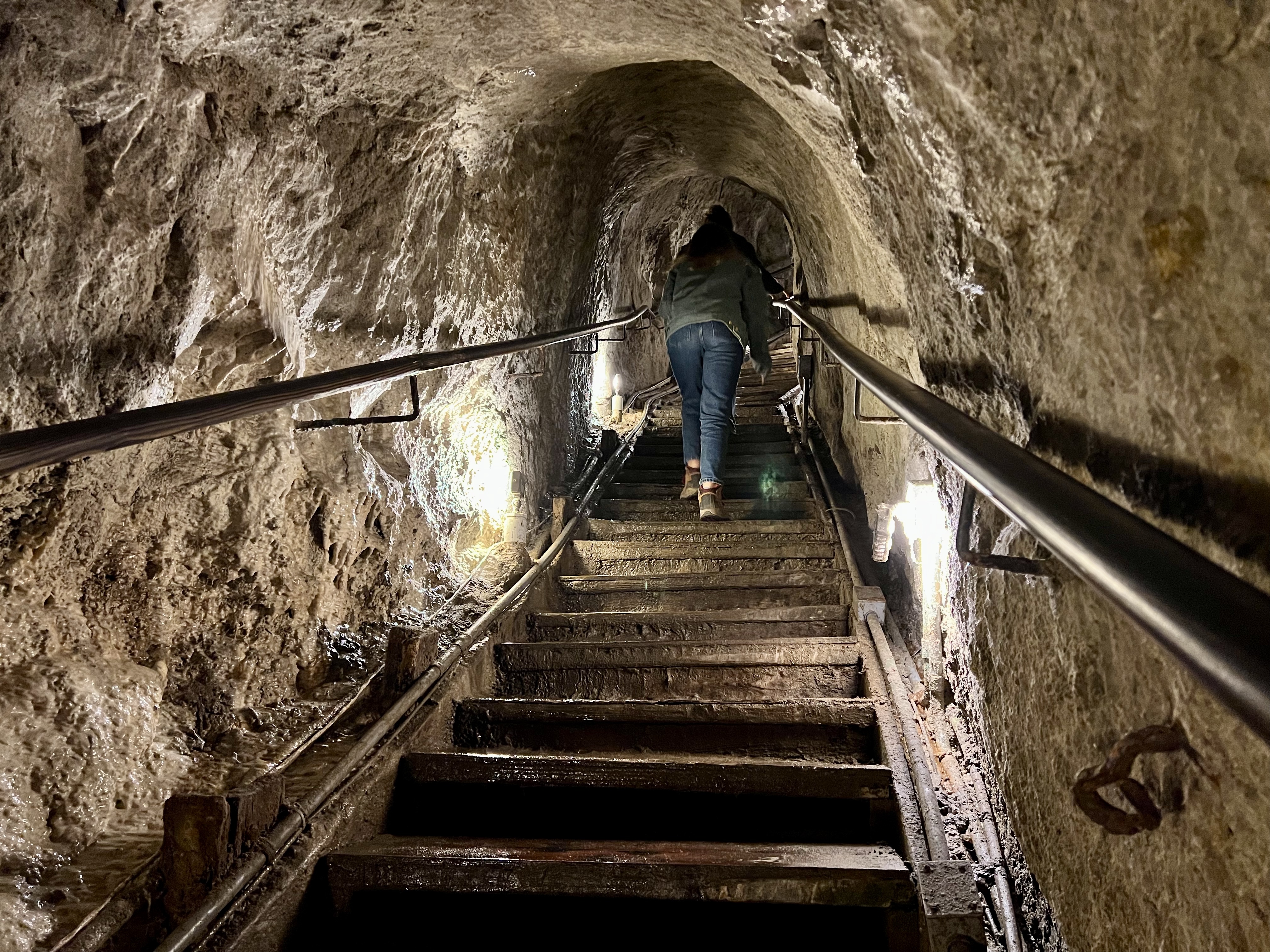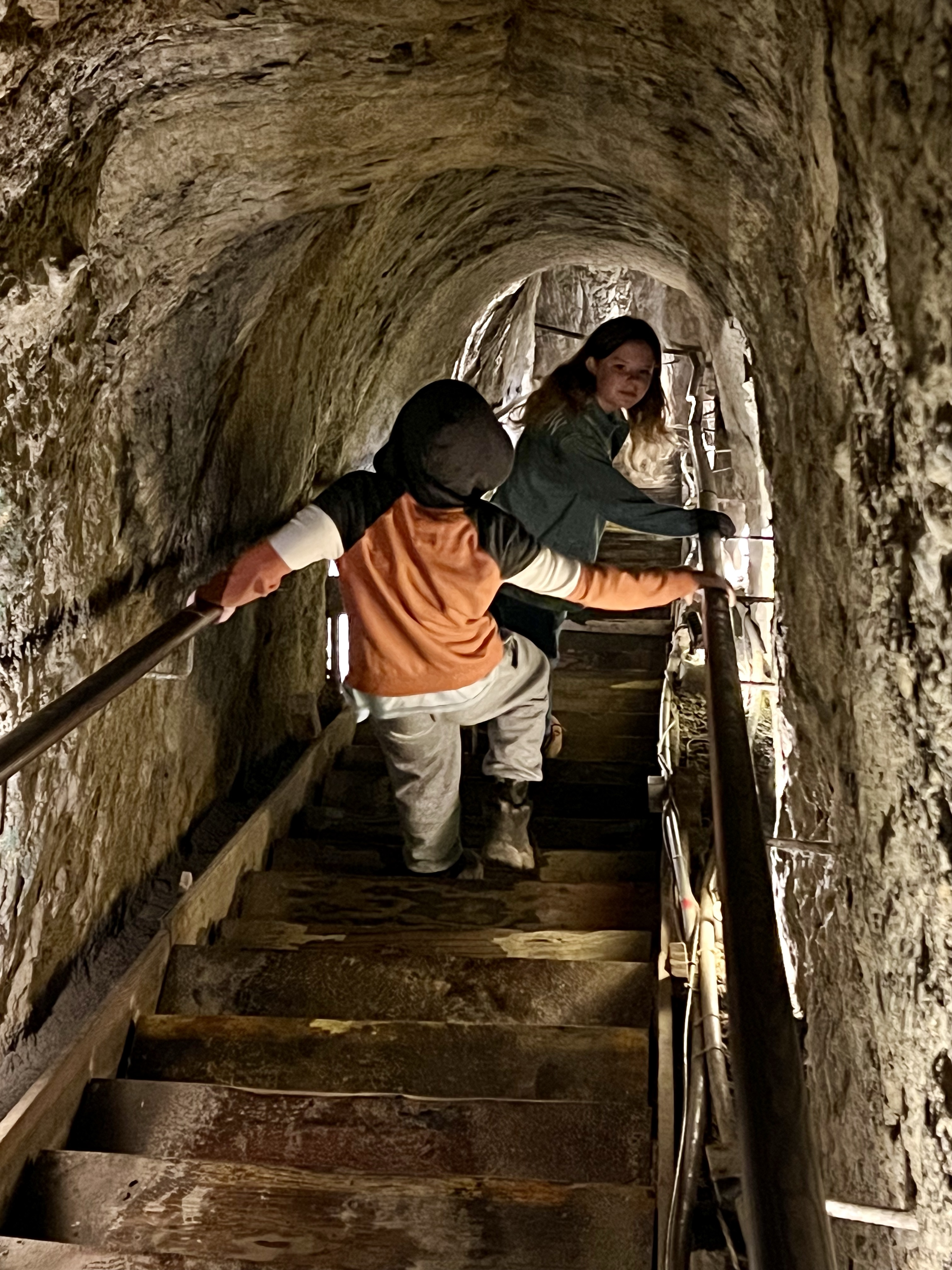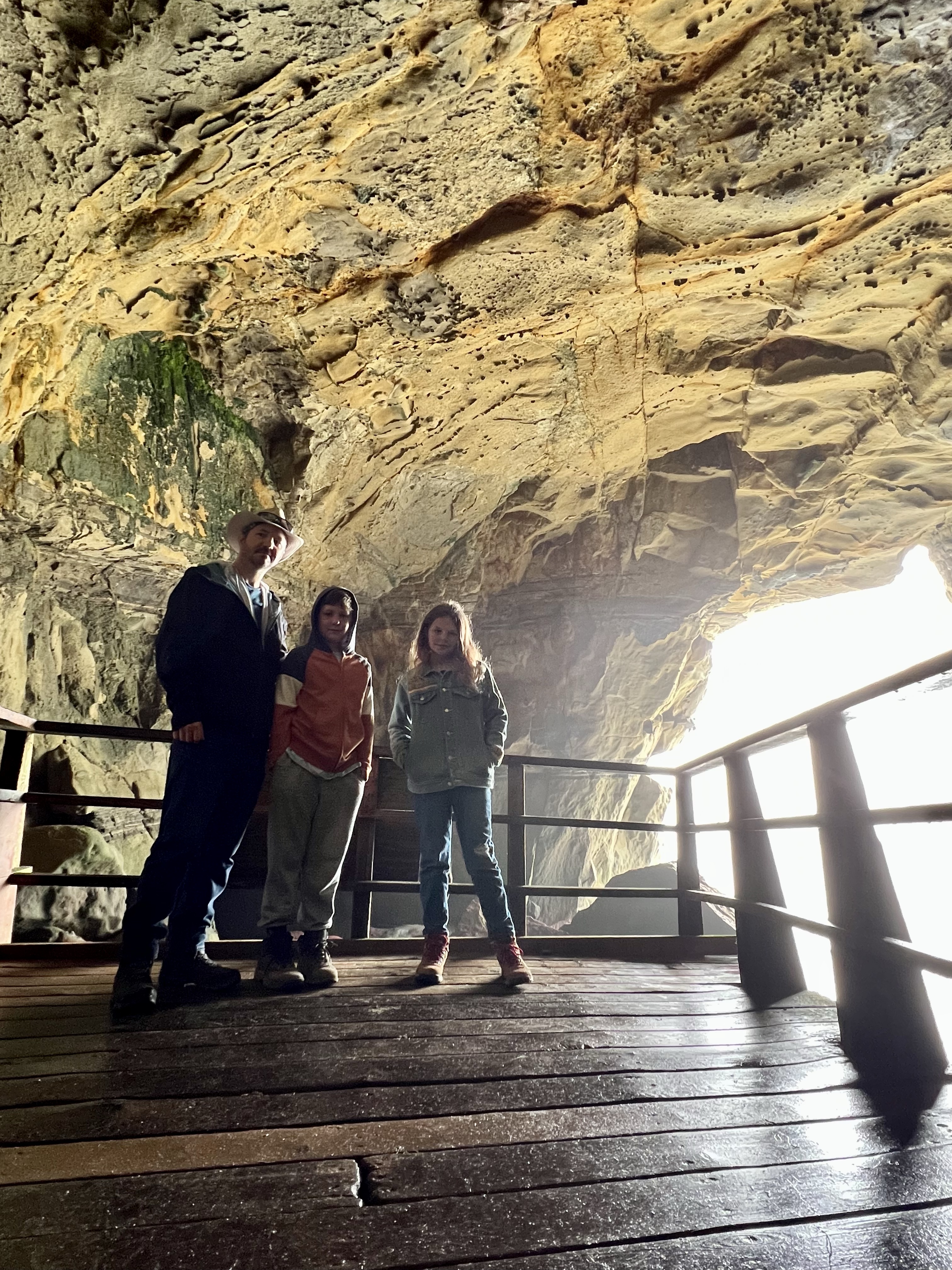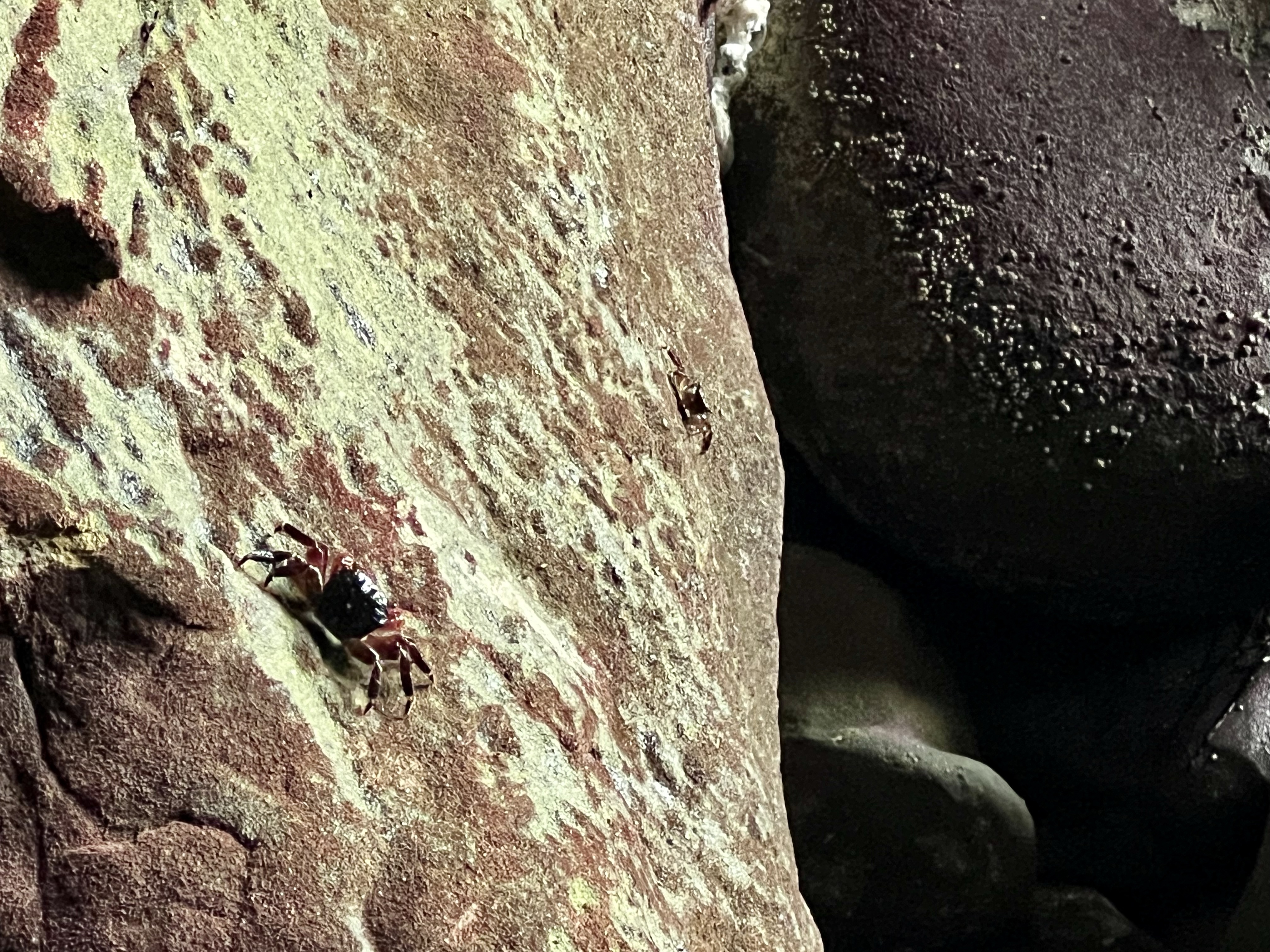 We came to the bottom & popped out onto a deck inside the cave. At first glance, it seemed like we were alone down there. The longer we looked around, we realized we were surrounded by crabs walking along the boulders.