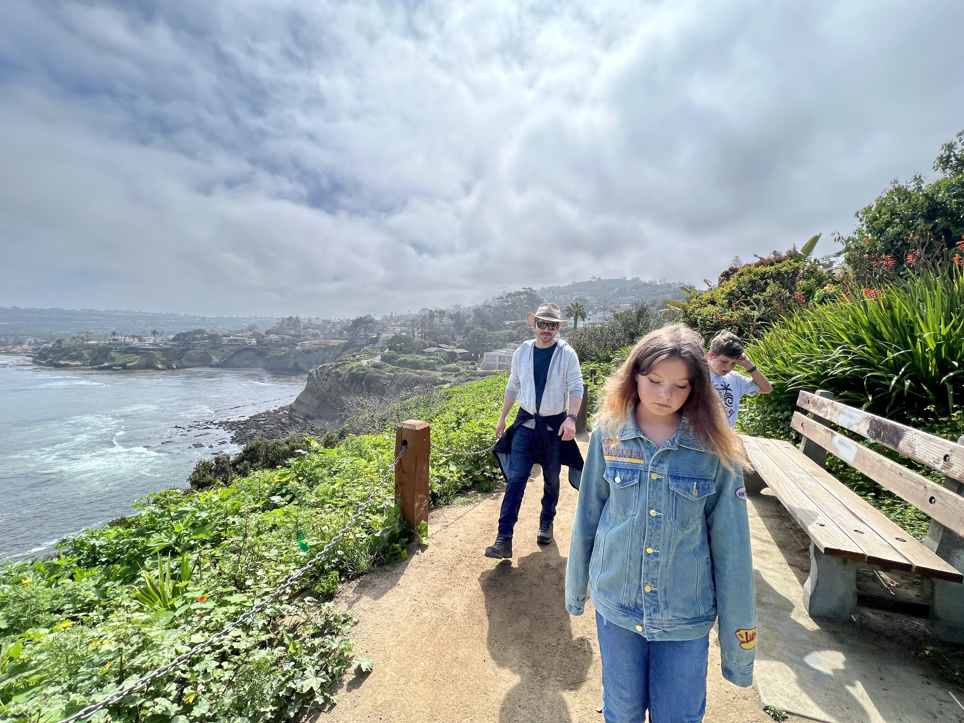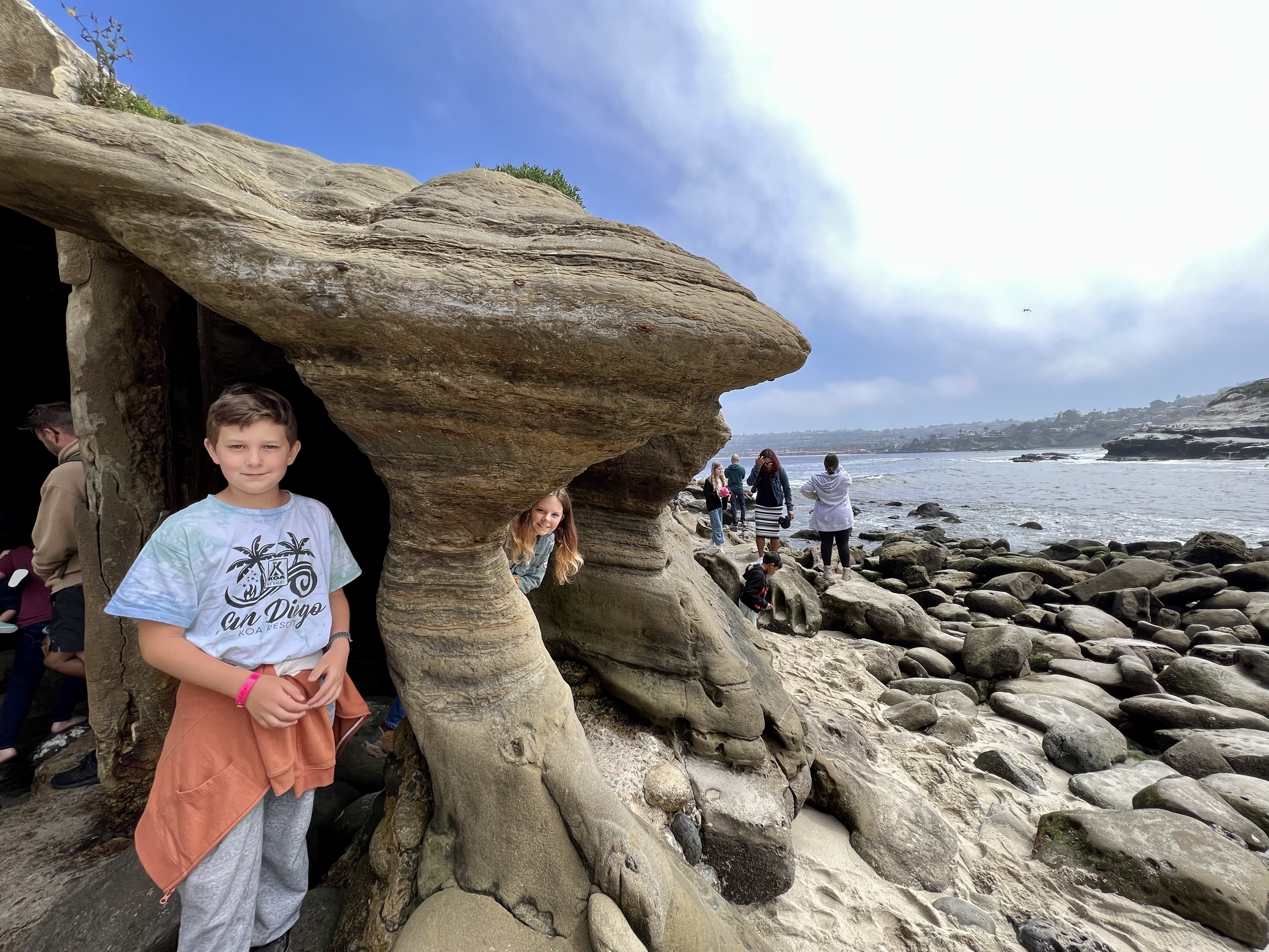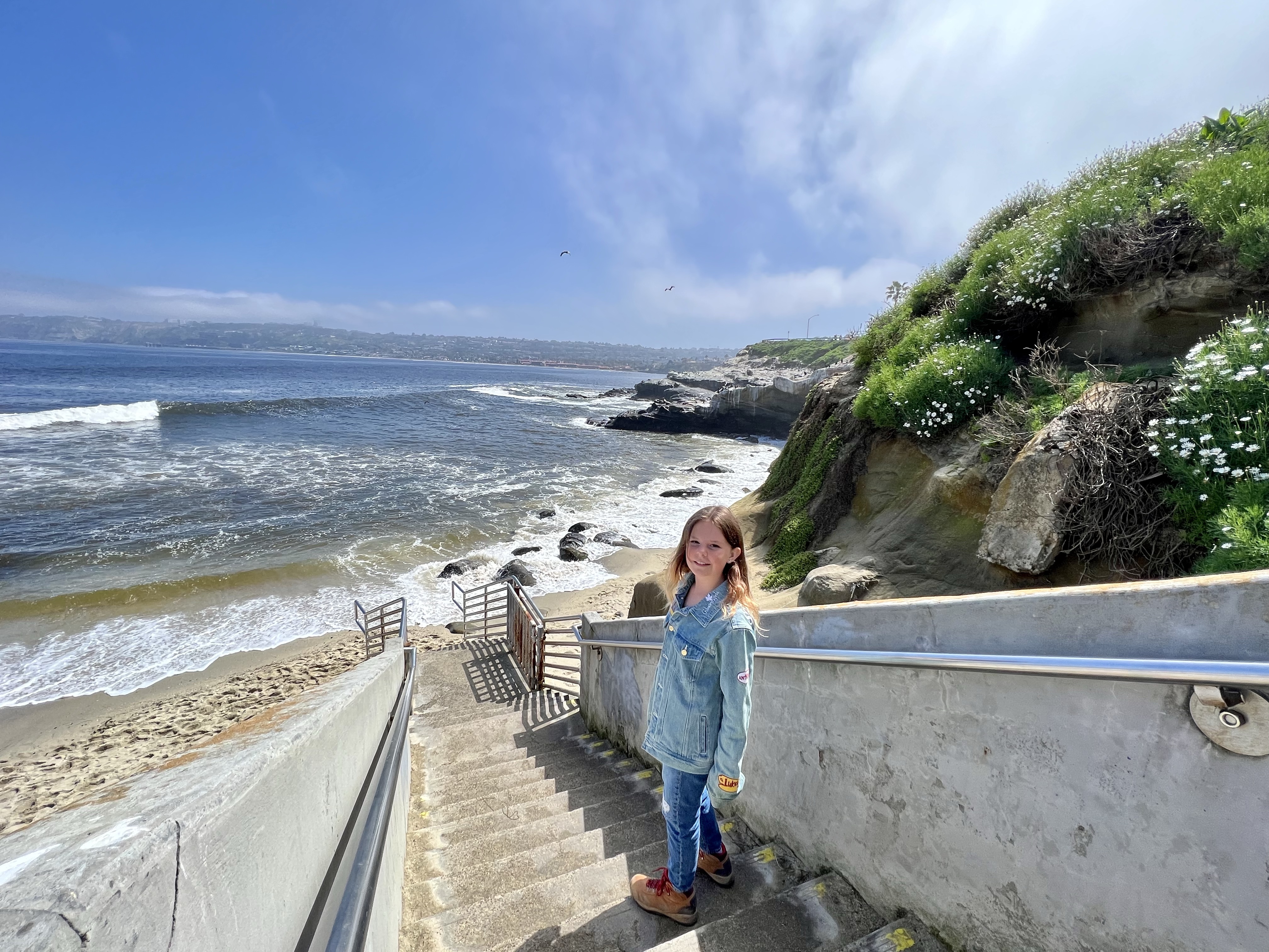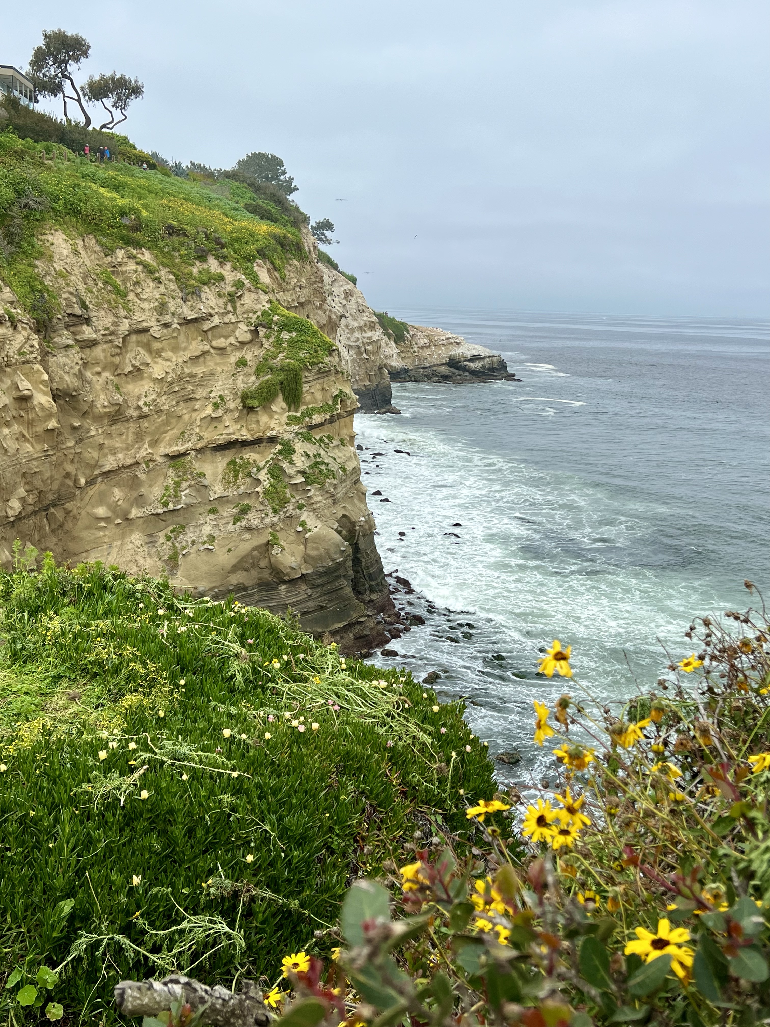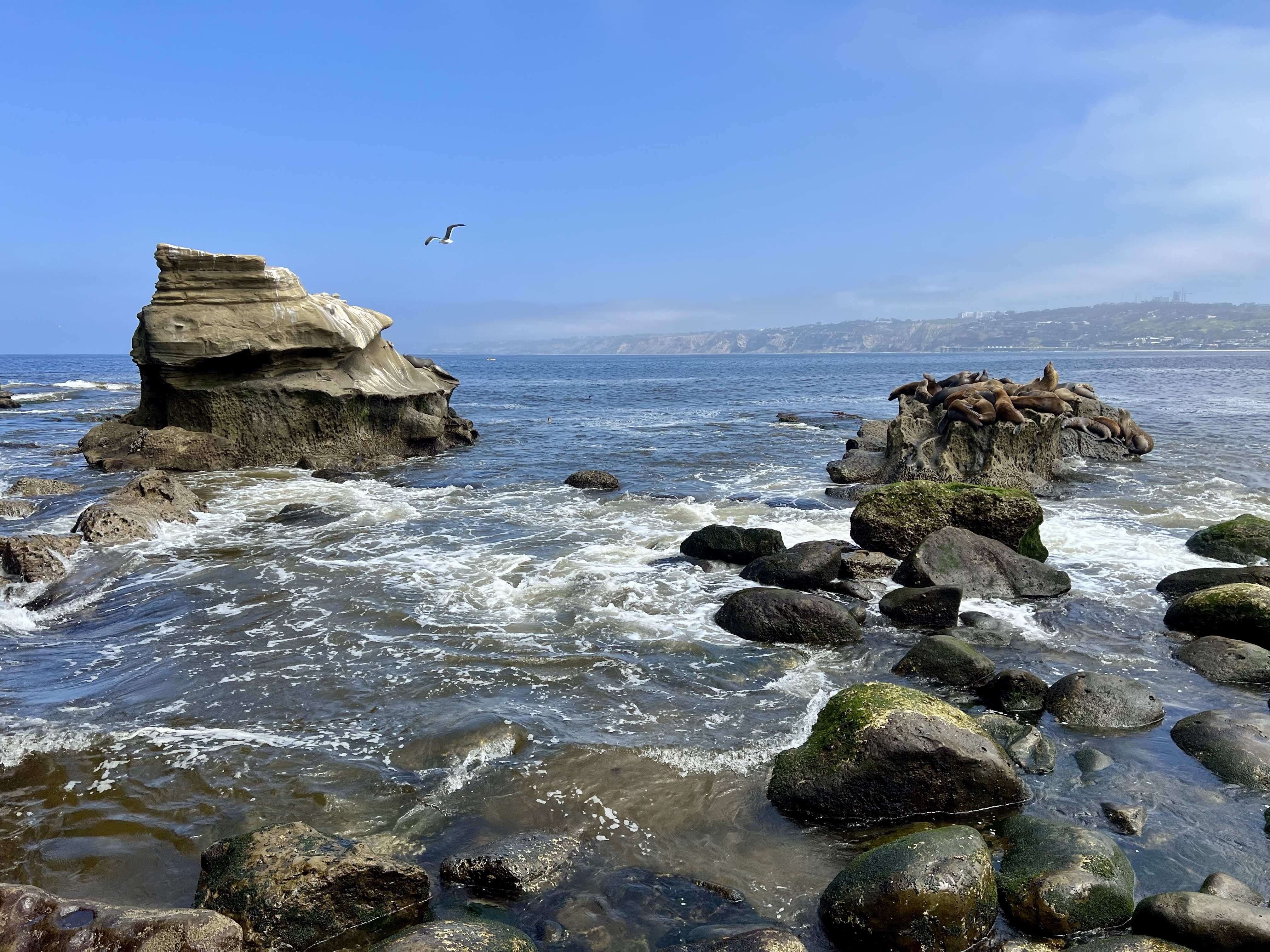 We spent our last day in San Diego doing as much sightseeing as possible. First, we headed to La Jolla for the beautiful beaches, sea caves, and seal and sea lion-viewing. We parked near The Cave Store & paid the entrance fee to take the tiny tunnel down to the sea cave. It was hard to believe that two men dug the entire tunnel by hand 1902! Water was trickling down the walls & along the sides of the uneven wooden stairs. My new claustrophobia issue popped up again…