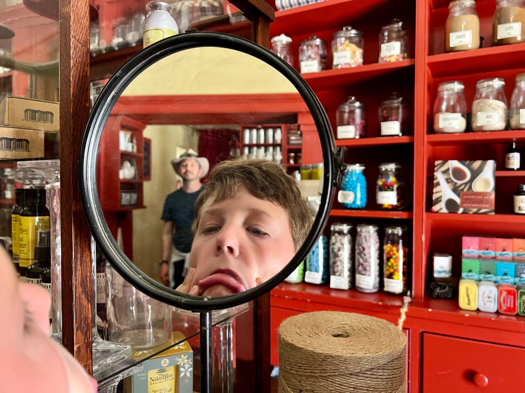 We’re quickly realizing the best place to stop is always the Visitor Information Center. We wandered in, talked to the man working there, & we asked if he’d recommend the tour of the haunted Whaley house – admission would cost us $60 for a 30-min tour! (Sofina quickly pointed out, “That’s $2/minute!”) The man recommended the FREE tour at the Mormon Battalion Museum. We headed there, & we were blown away by how immersive the experience was! I wish every museum could bring history to life in this way! We were taken back in time to 1846 & became a group of Mormons who had just joined the US Army & needed to march 2,000 miles across the southwest during the Mexican-American war.