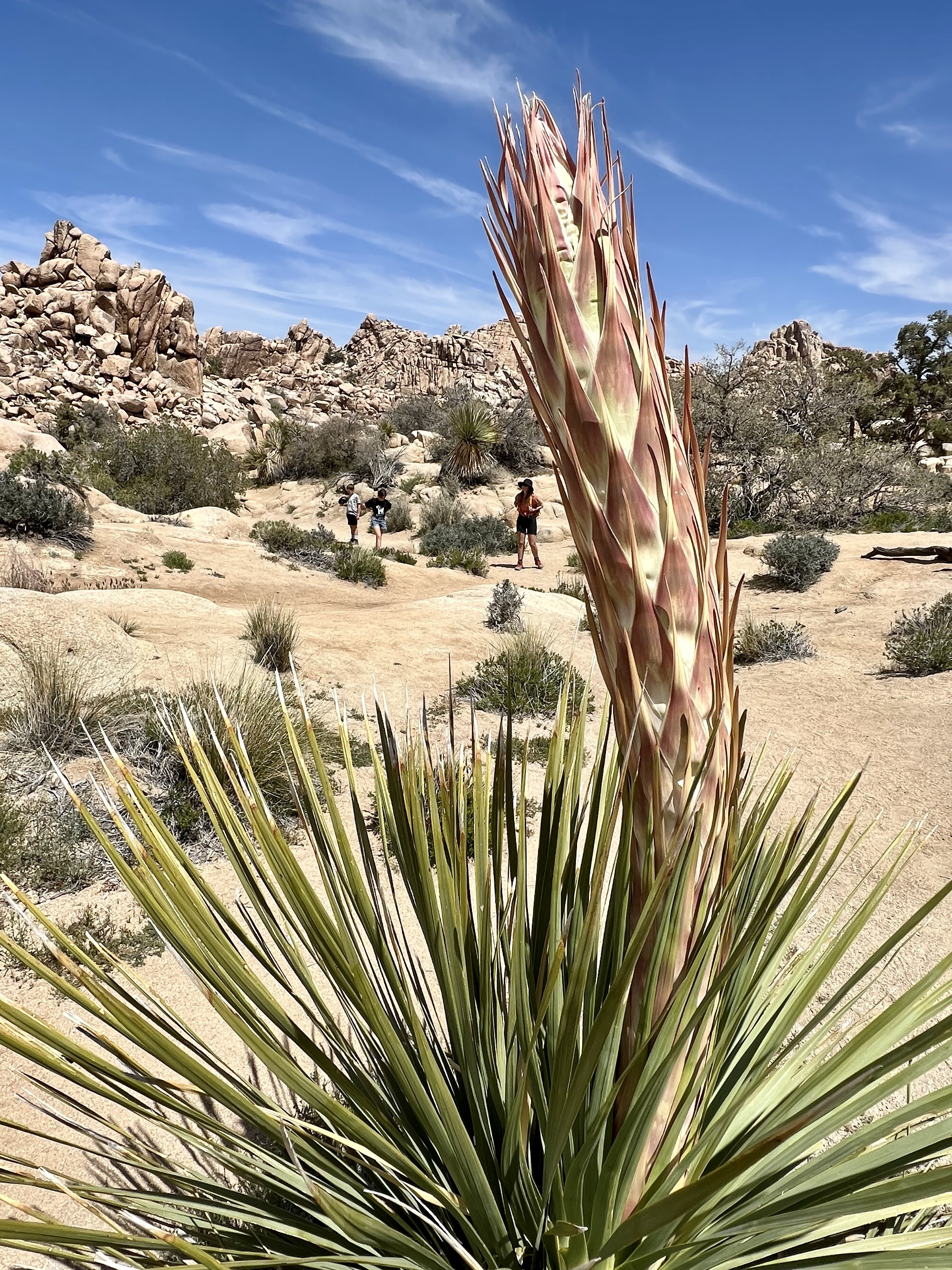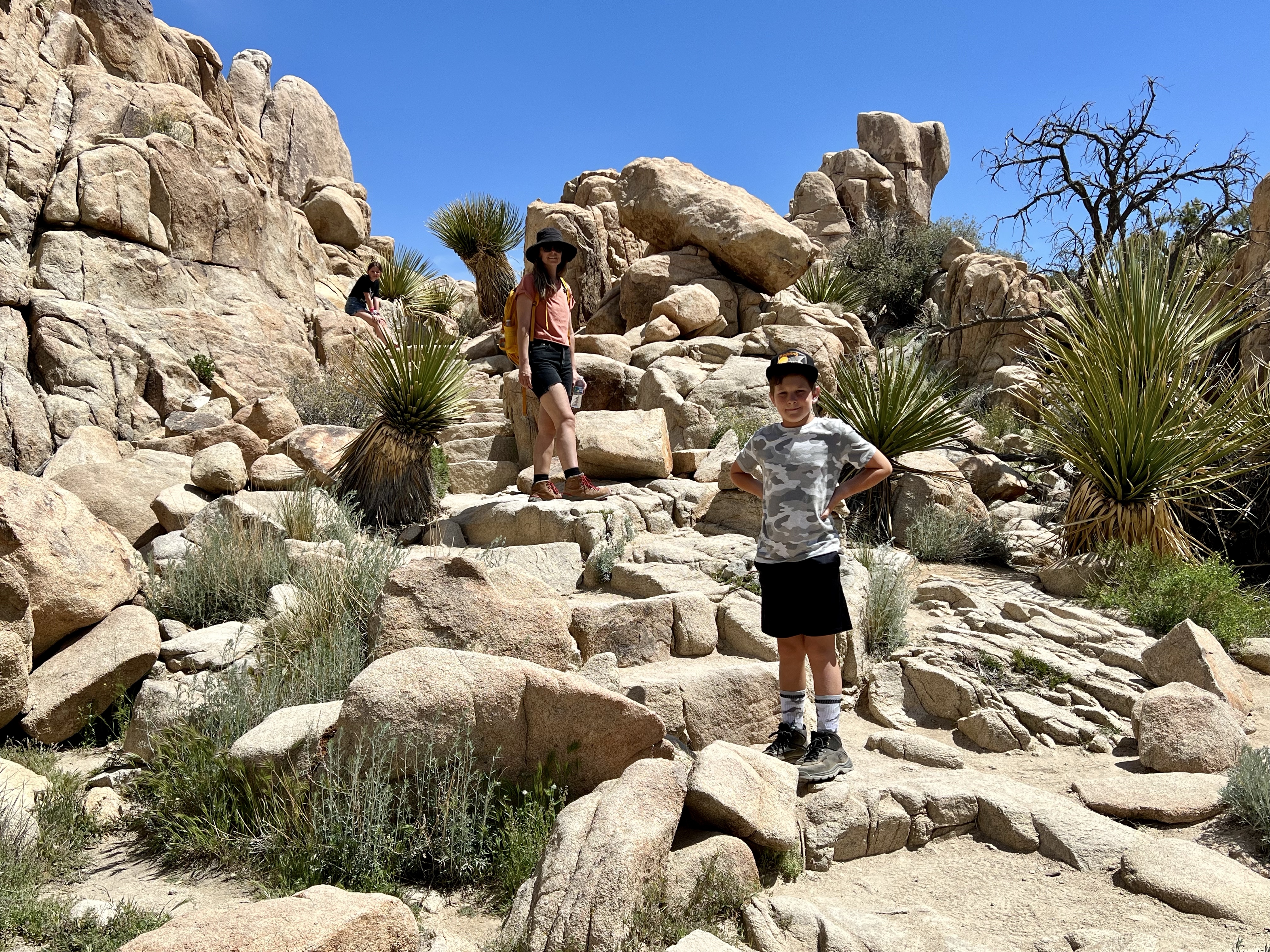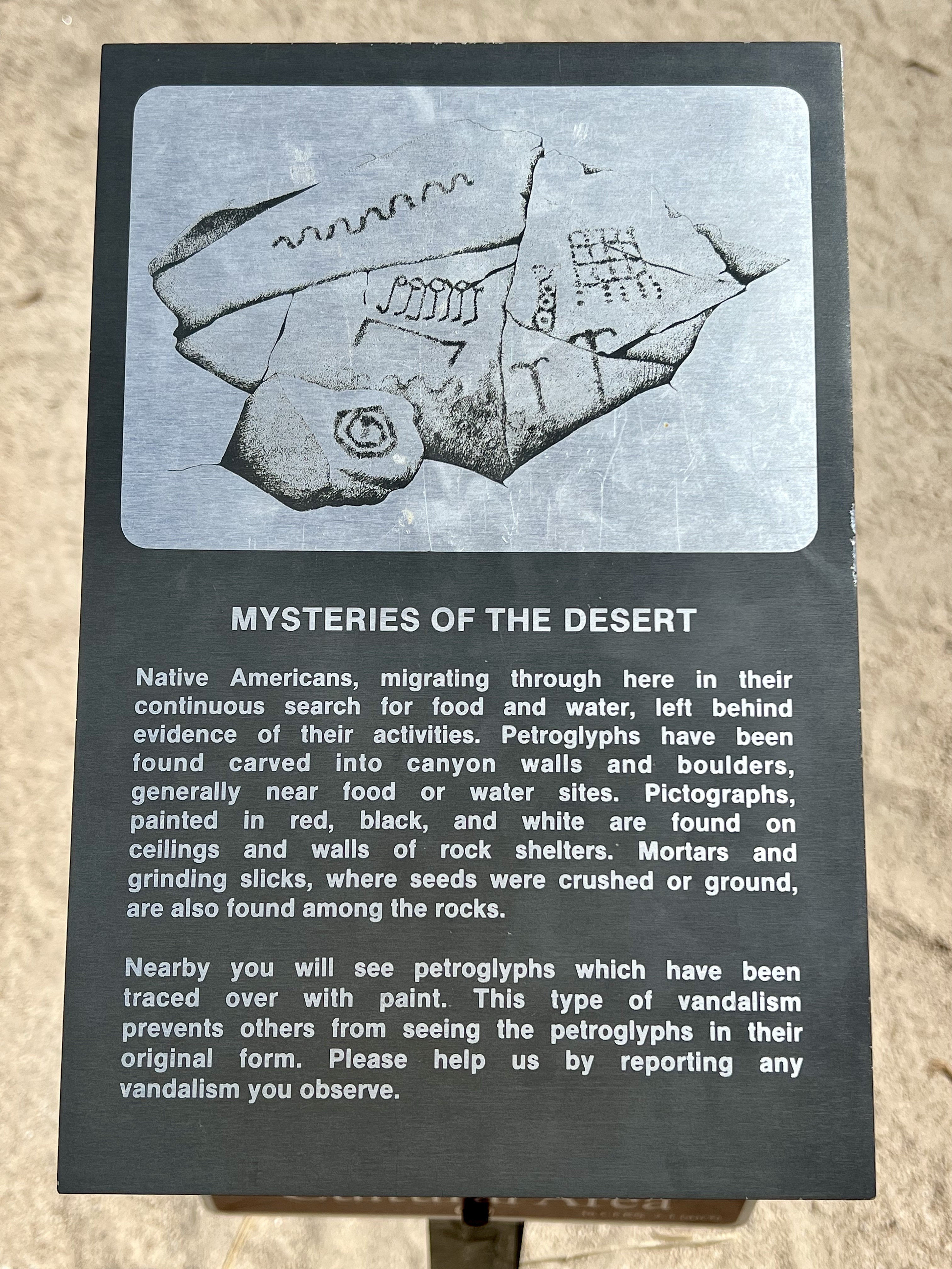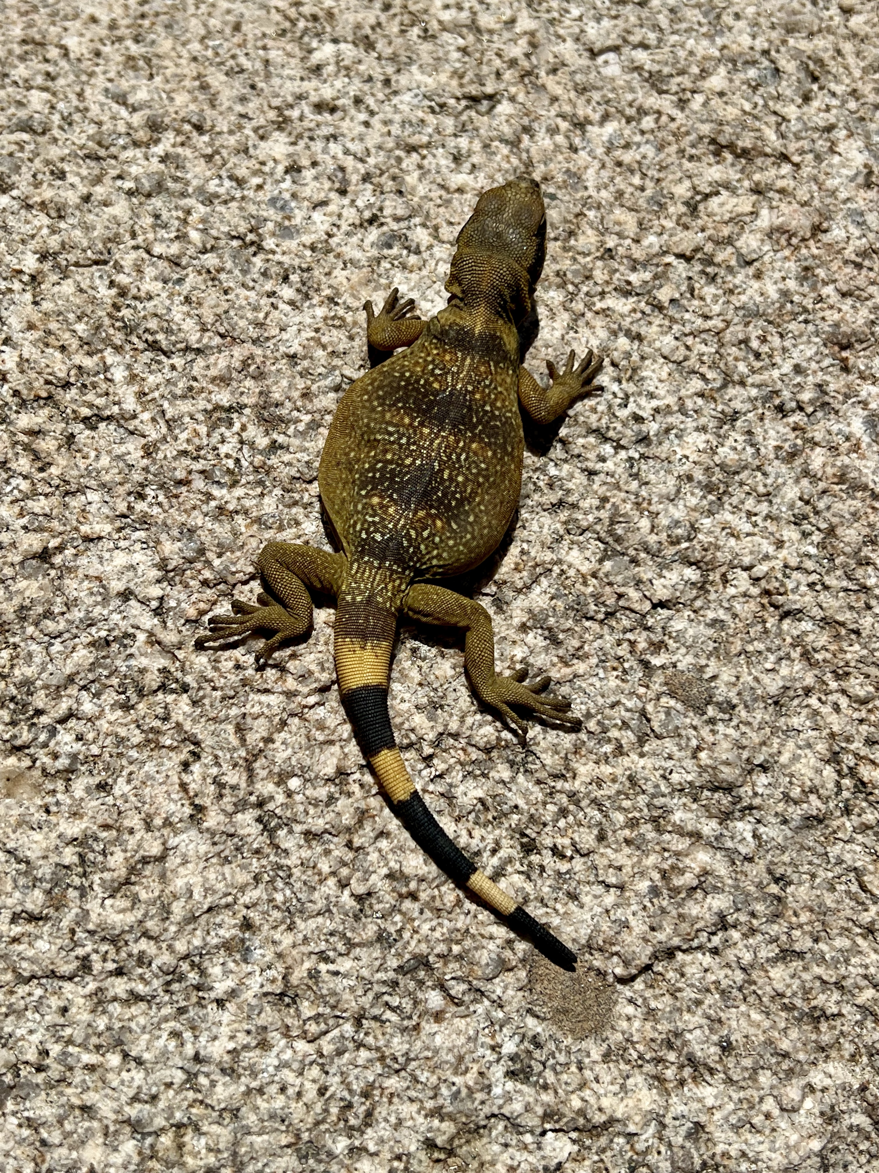 We started out at noon. It’s a short trail, but even in April midday gets pretty hot. We got to see a young chuckwalla & what we assumed was its mama on another rock.