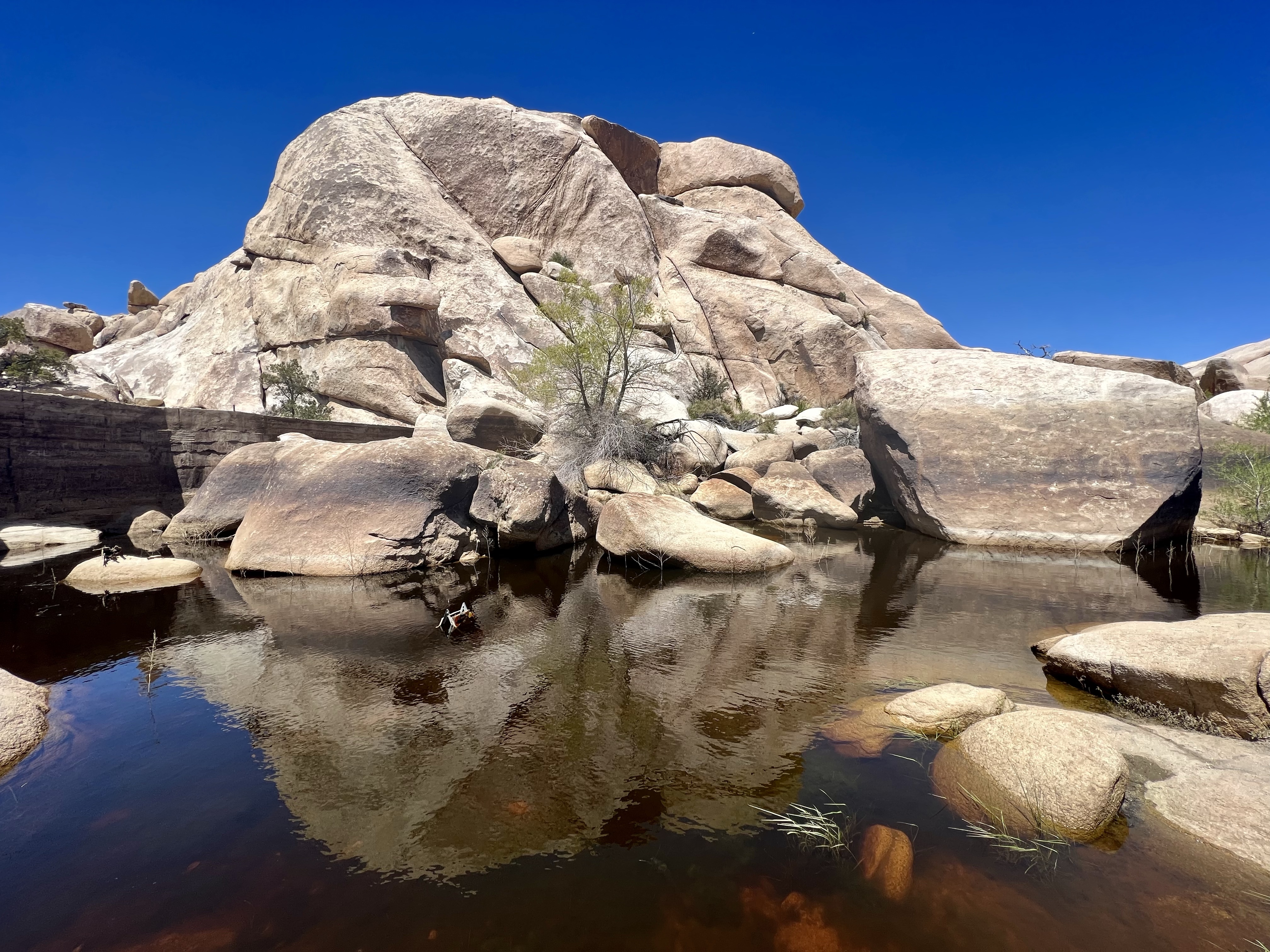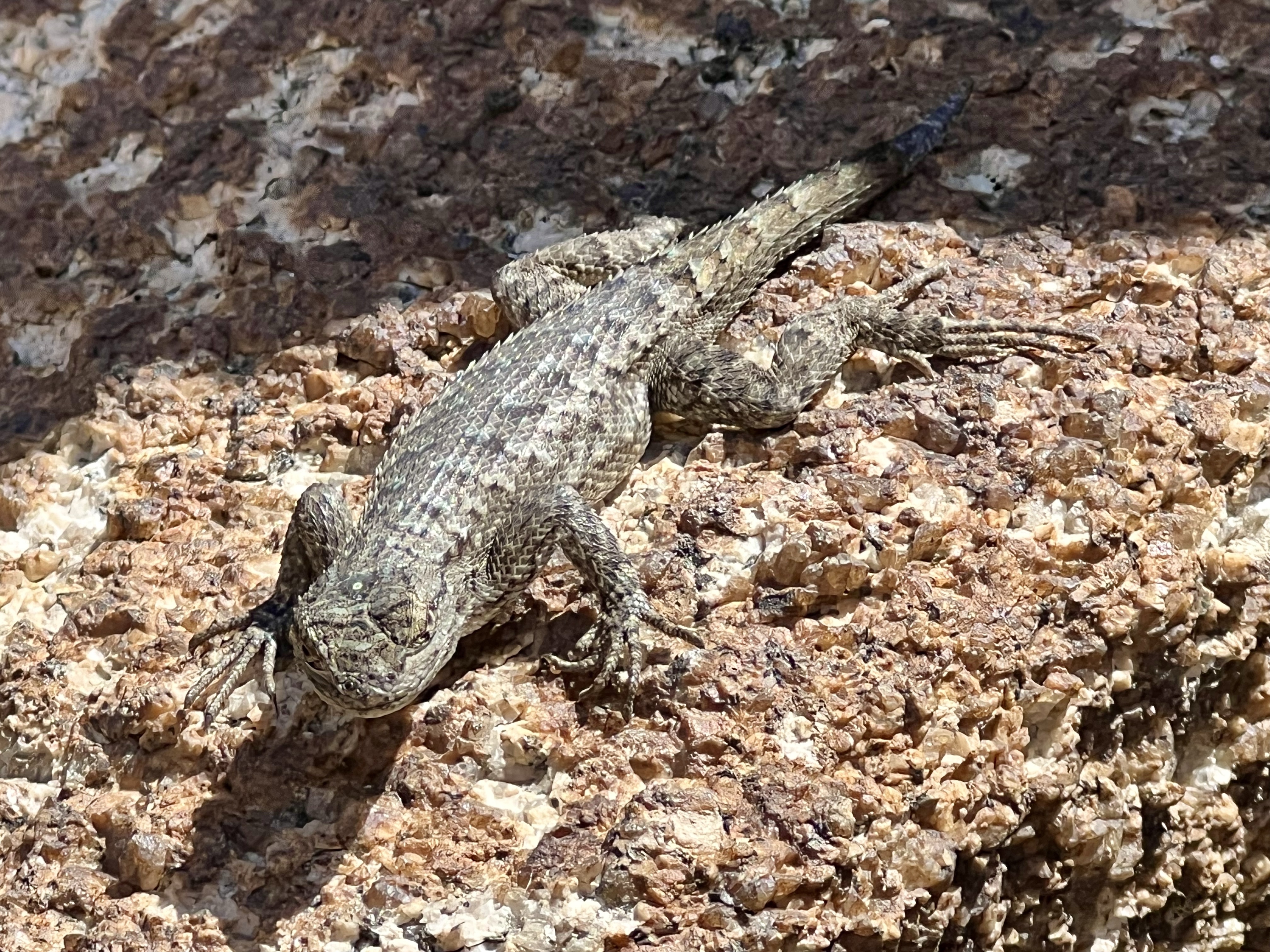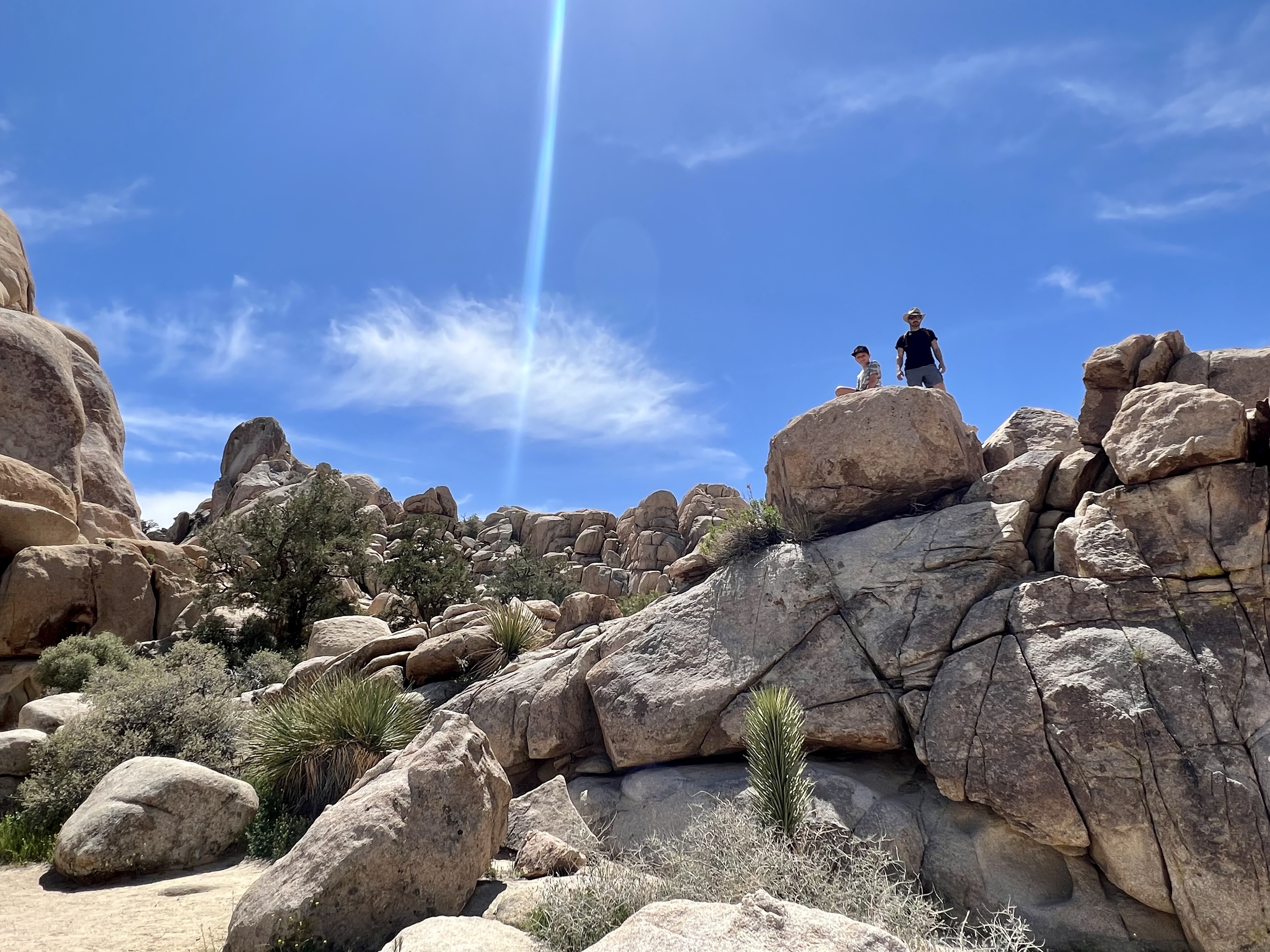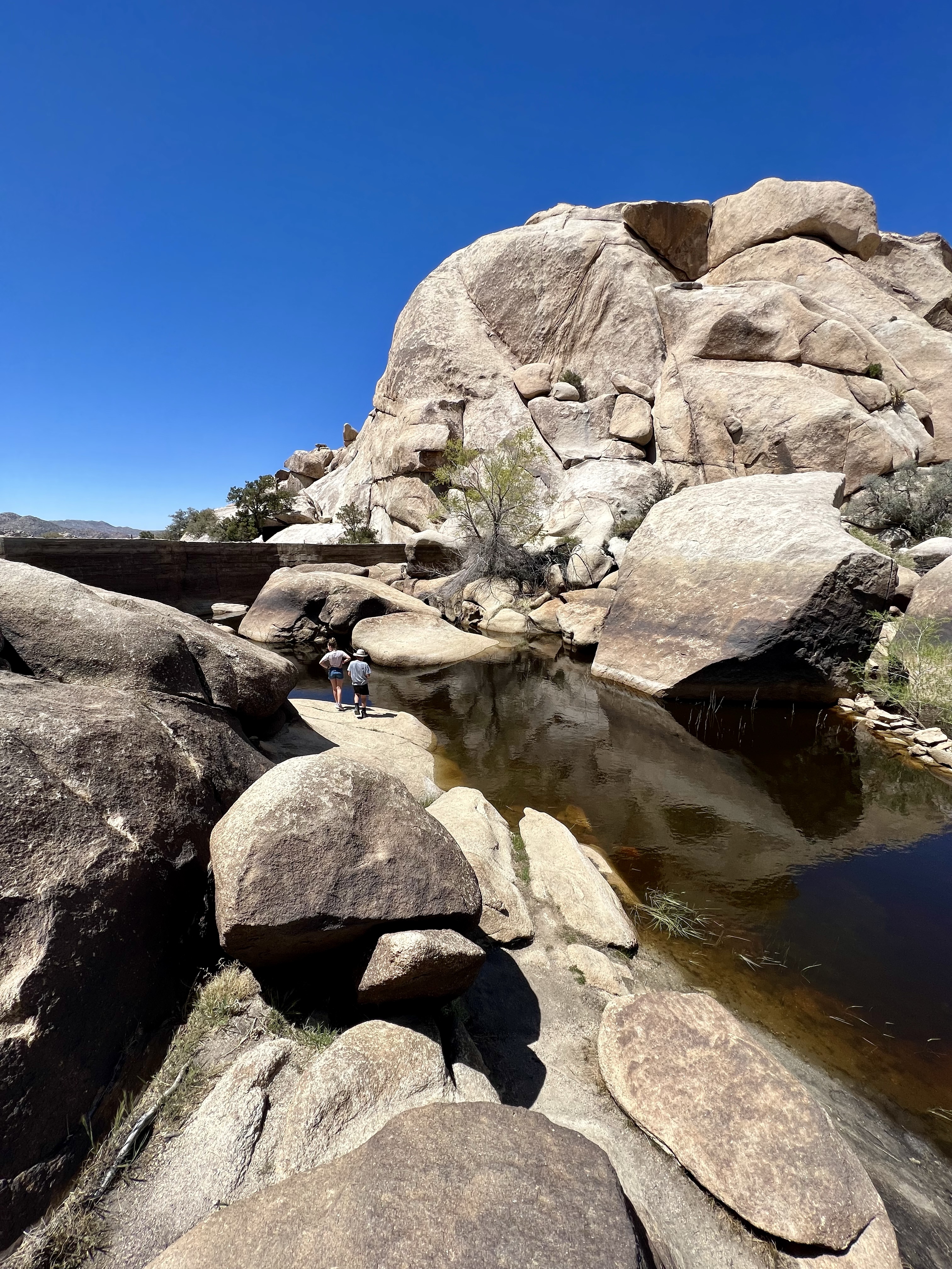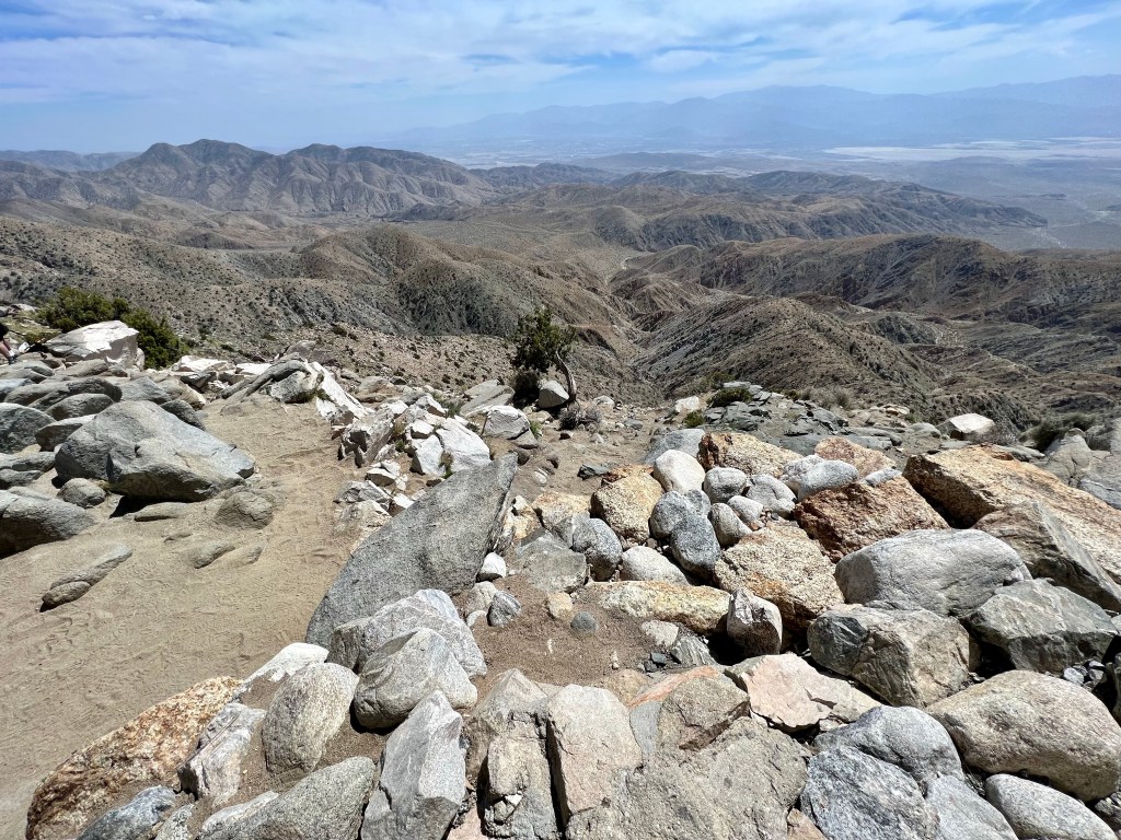 We started out at noon. It’s a short trail, but even in April midday gets pretty hot. We got to see a young chuckwalla & what we assumed was its mama on another rock.