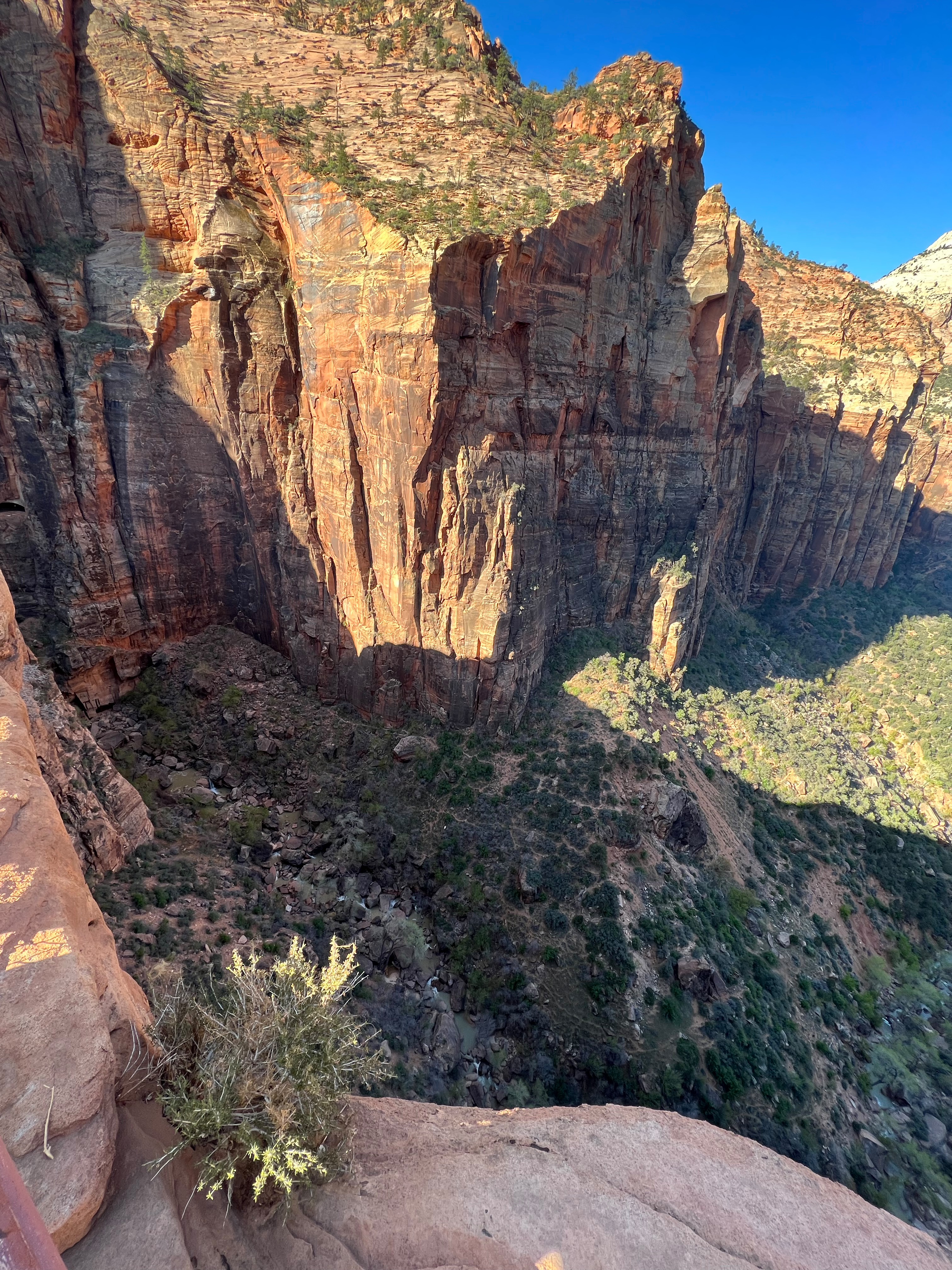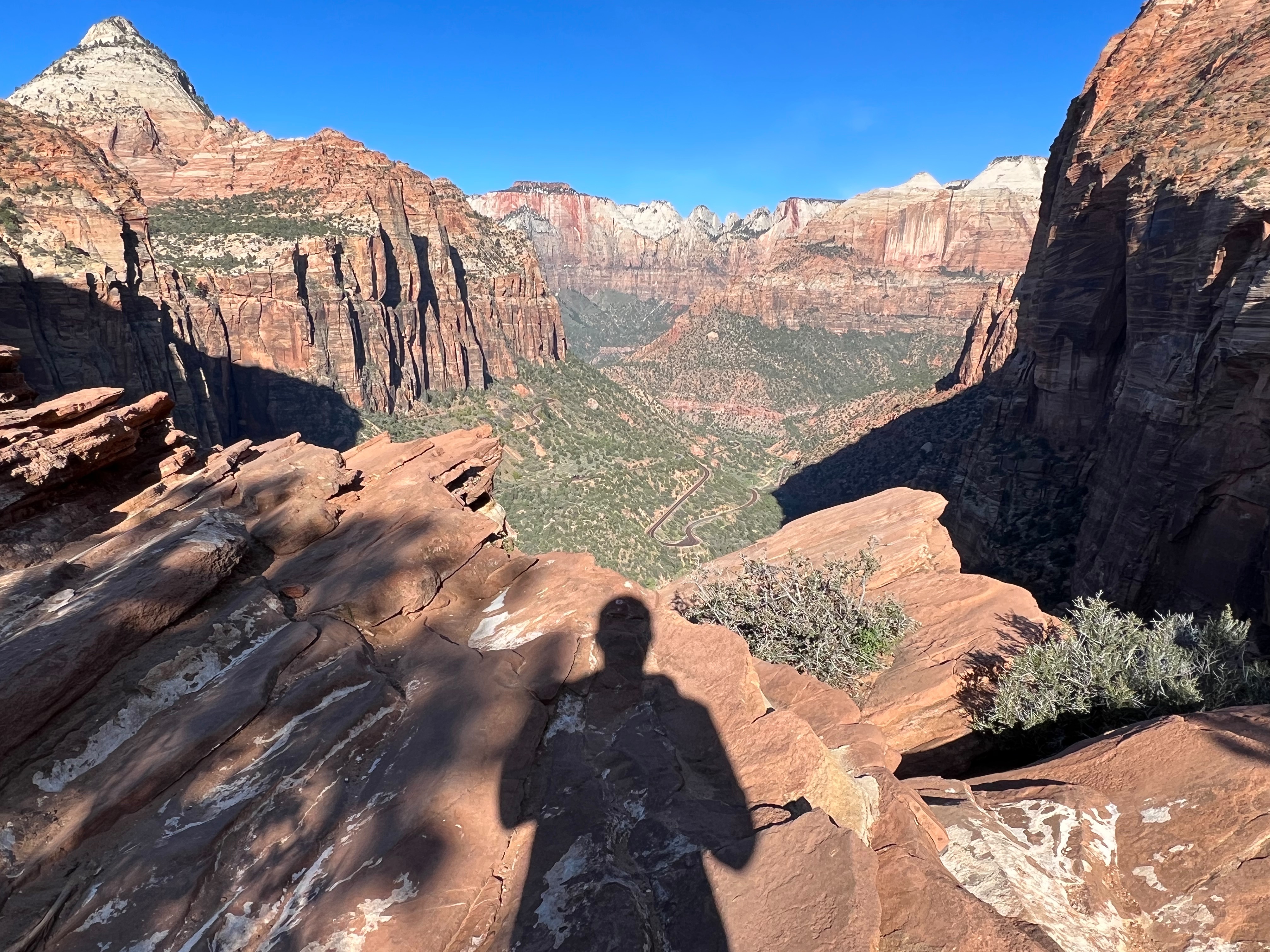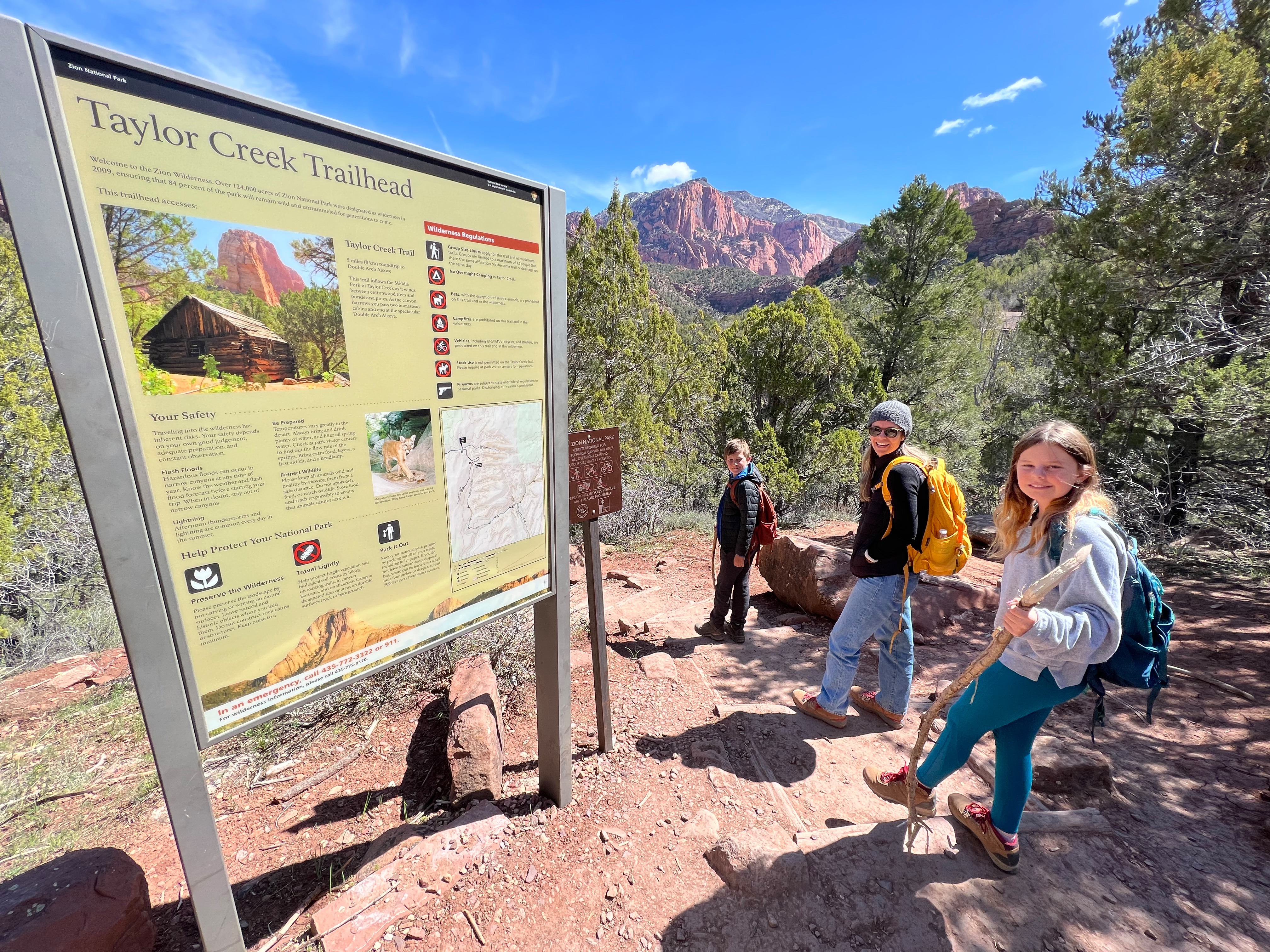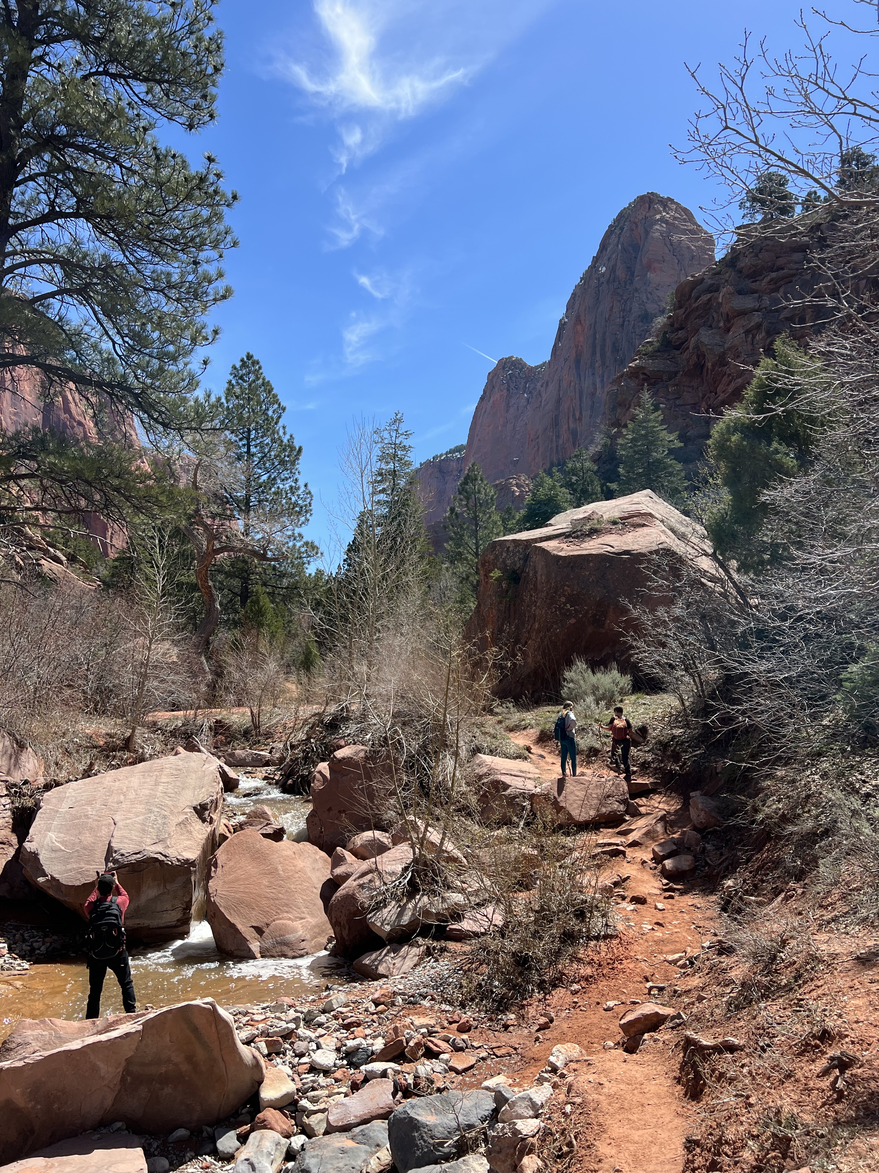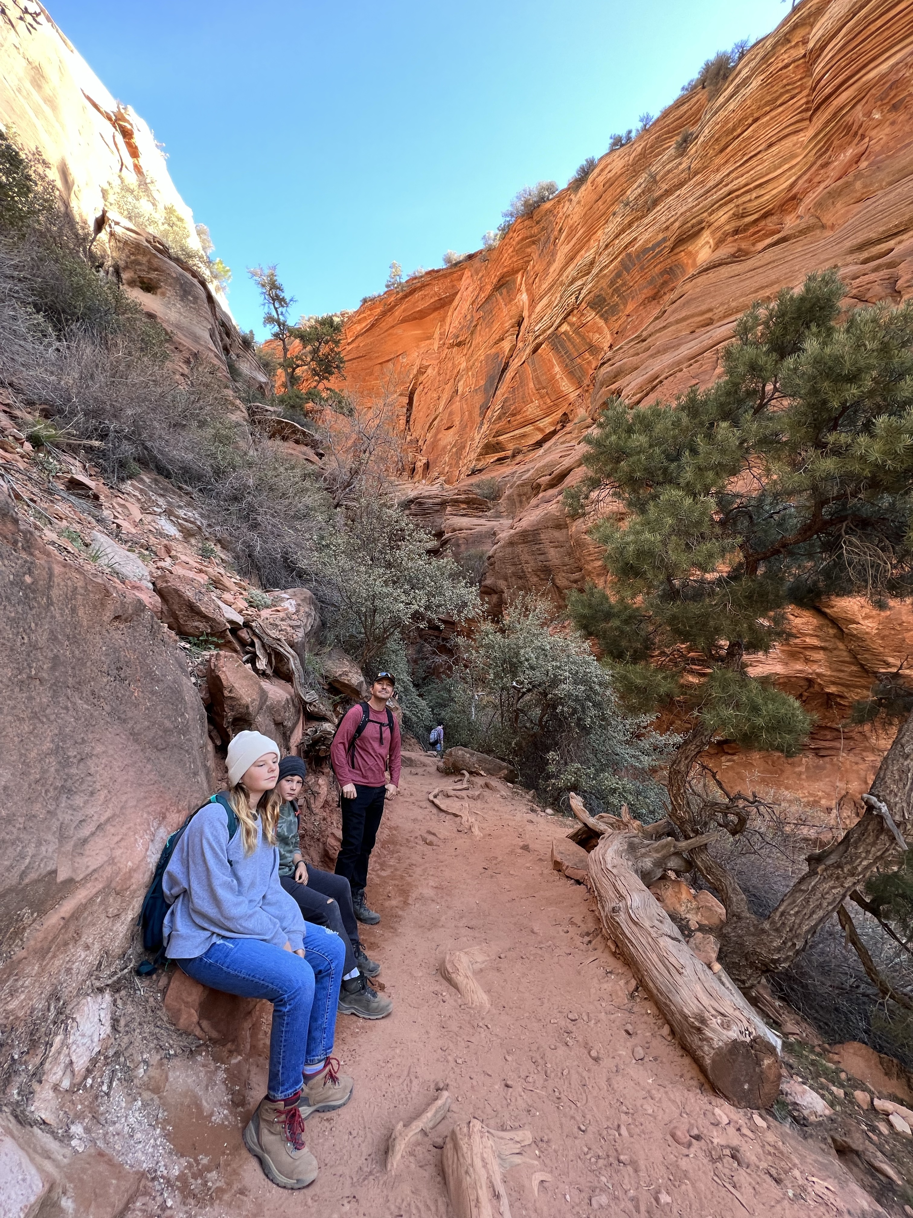 We walked along the road to the trailhead & read the trail sign. It mentioned something like, “minor drop-offs and handrails,” and “not recommended for those affected by heights.” Suuuuper. I’d assumed since it was only 1 mile long, and an “overlook,” it would be simple & safe. I apparently have a different connotation of “overlook.” Everything here is on a superhuman scale – the scale doesn’t even make sense. This sure was an overlook, as in you look right over the edge of a cliff & can’t even see the bottom. The trail is mostly a path carved out of sandstone along a cliff. I hugged that cliff & drove the kids crazy, reminding them to BE CAREFUL. We could hear the river, & it was loud, but it was so far down into the slit of the canyon that we couldn’t even see it! As usual, it was absolutely worth it (to the kids, especially to play with chipmunks on a mountain). — Also, if an 80-year-old rancher from Texas offers to take your family photo at an overlook, kindly say “no thank you” & ask the Instagrammer ladies on the cliff risking their lives for the perfect shot – they know what they’re doing – picture-wise, at least. —