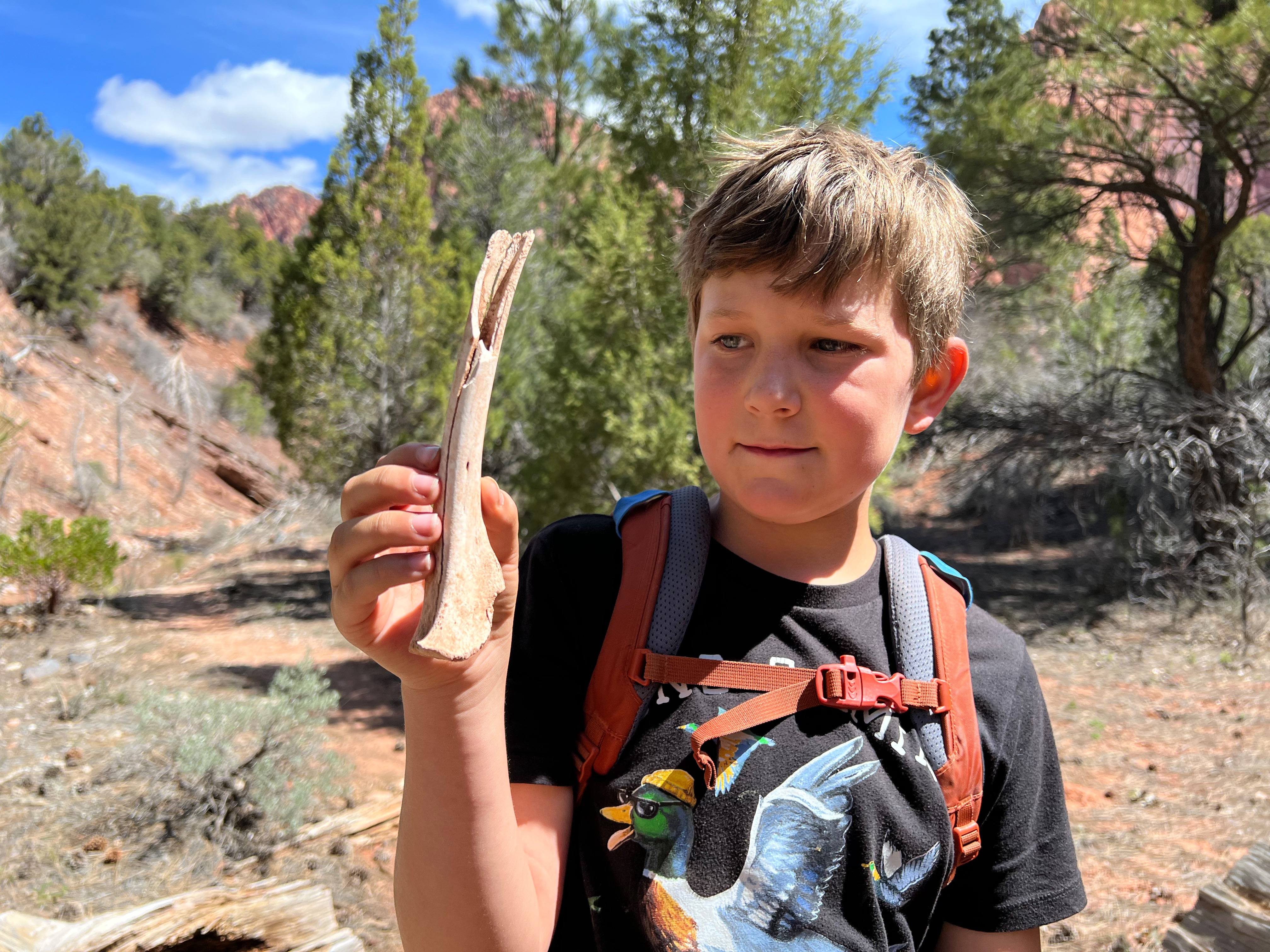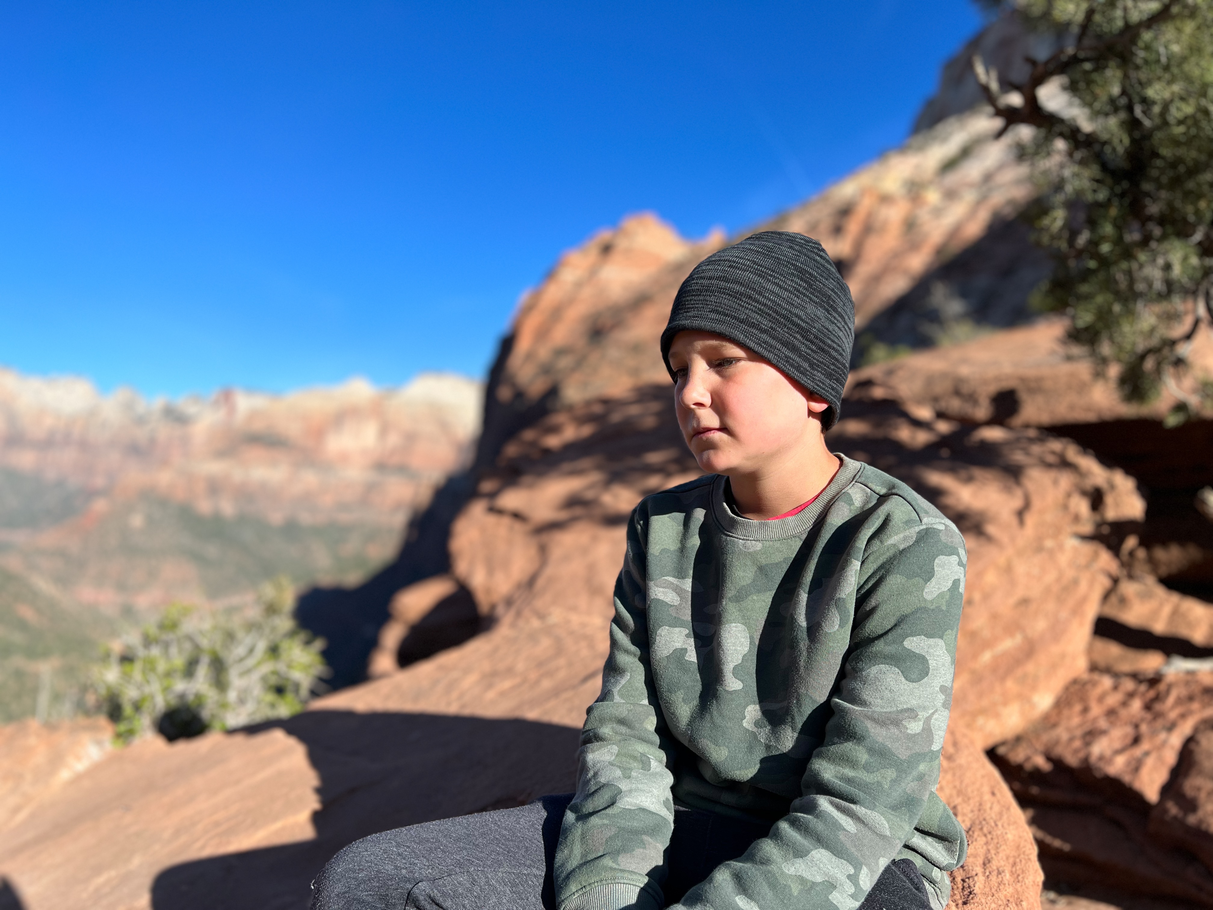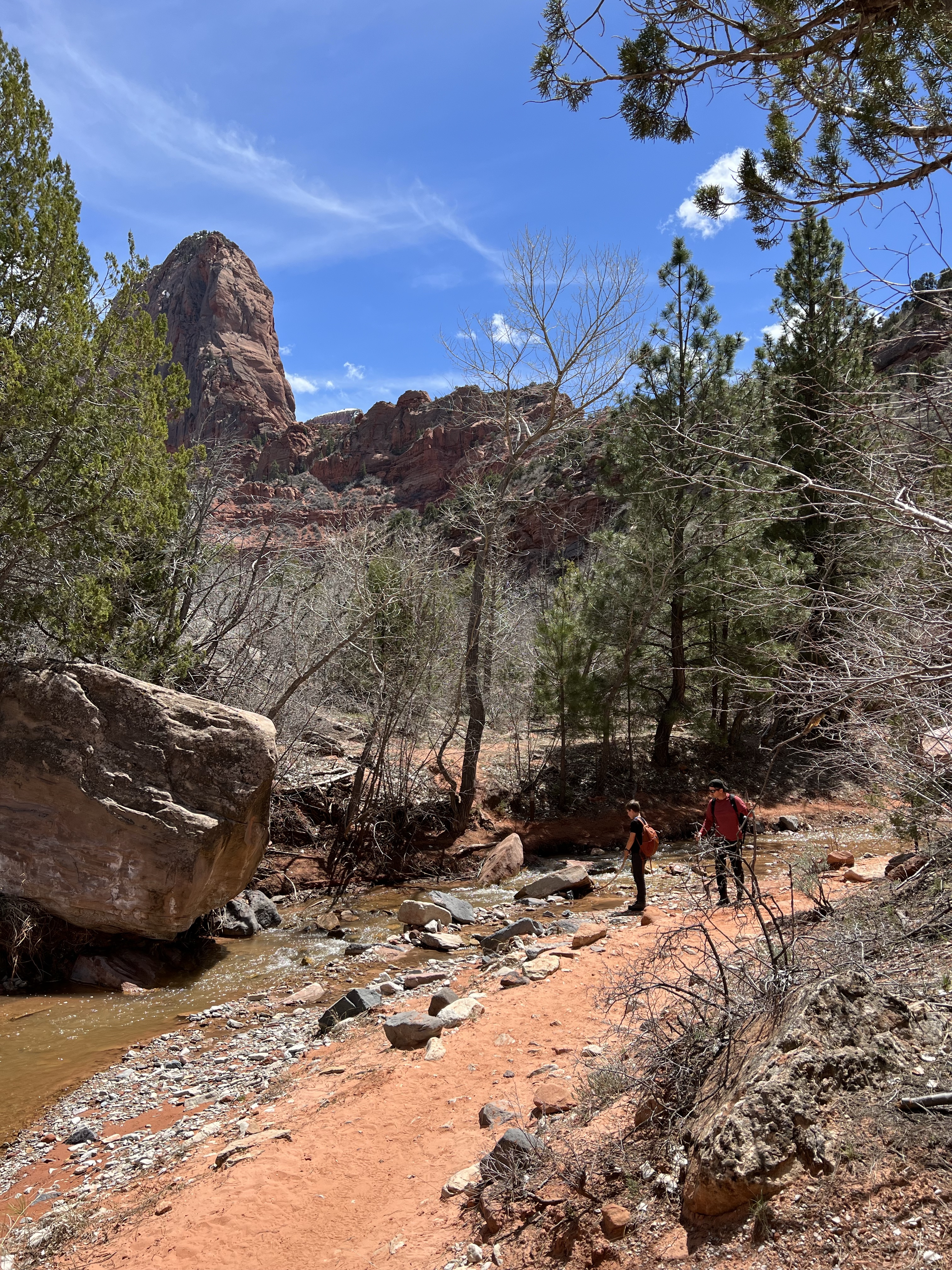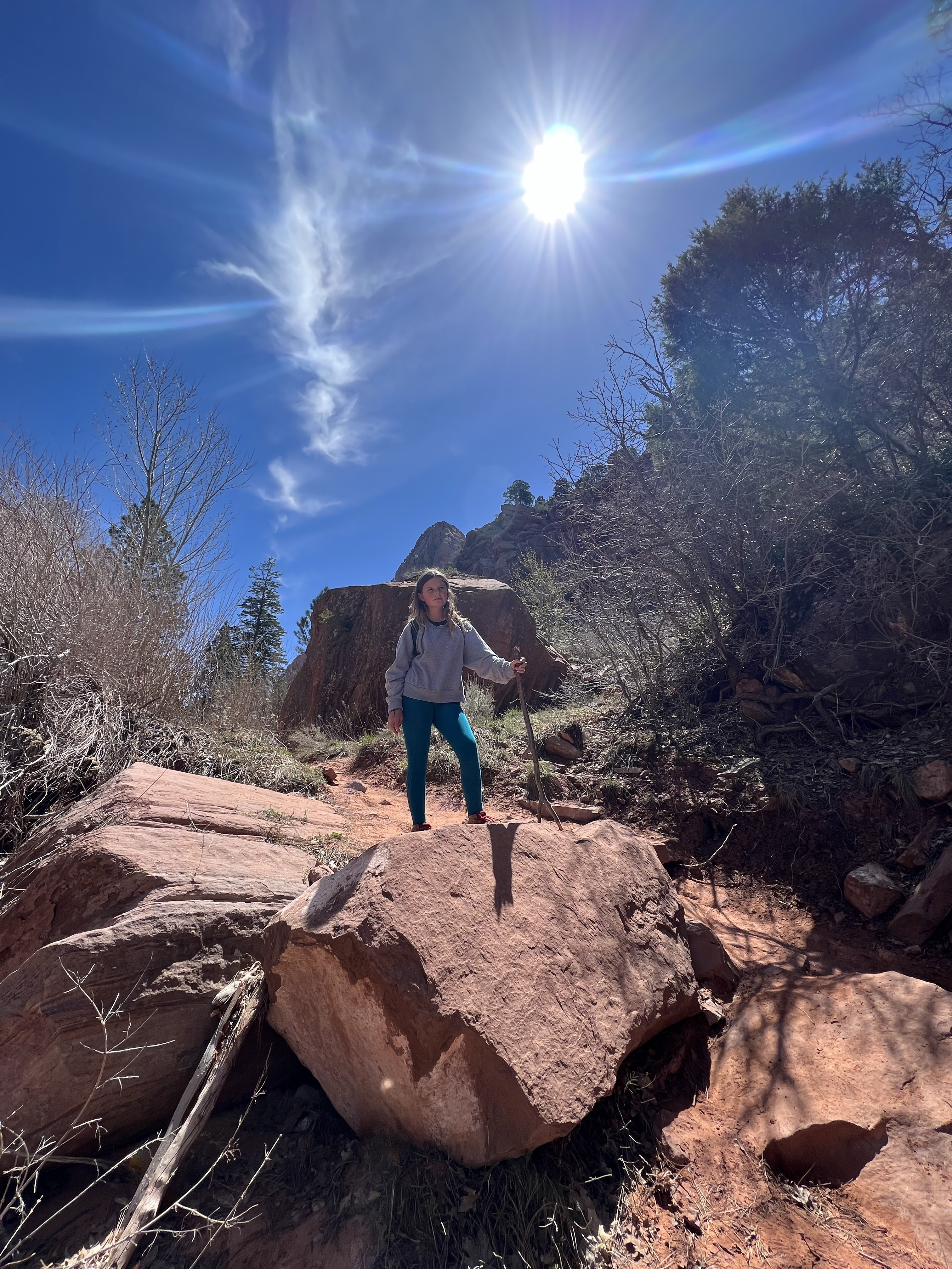 We walked along the road to the trailhead & read the trail sign. It mentioned something like, “minor drop-offs and handrails,” and “not recommended for those affected by heights.” Suuuuper. I’d assumed since it was only 1 mile long, and an “overlook,” it would be simple & safe. I apparently have a different connotation of “overlook.” Everything here is on a superhuman scale – the scale doesn’t even make sense. This sure was an overlook, as in you look right over the edge of a cliff & can’t even see the bottom. The trail is mostly a path carved out of sandstone along a cliff. I hugged that cliff & drove the kids crazy, reminding them to BE CAREFUL. We could hear the river, & it was loud, but it was so far down into the slit of the canyon that we couldn’t even see it! As usual, it was absolutely worth it (to the kids, especially to play with chipmunks on a mountain). — Also, if an 80-year-old rancher from Texas offers to take your family photo at an overlook, kindly say “no thank you” & ask the Instagrammer ladies on the cliff risking their lives for the perfect shot – they know what they’re doing – picture-wise, at least. —