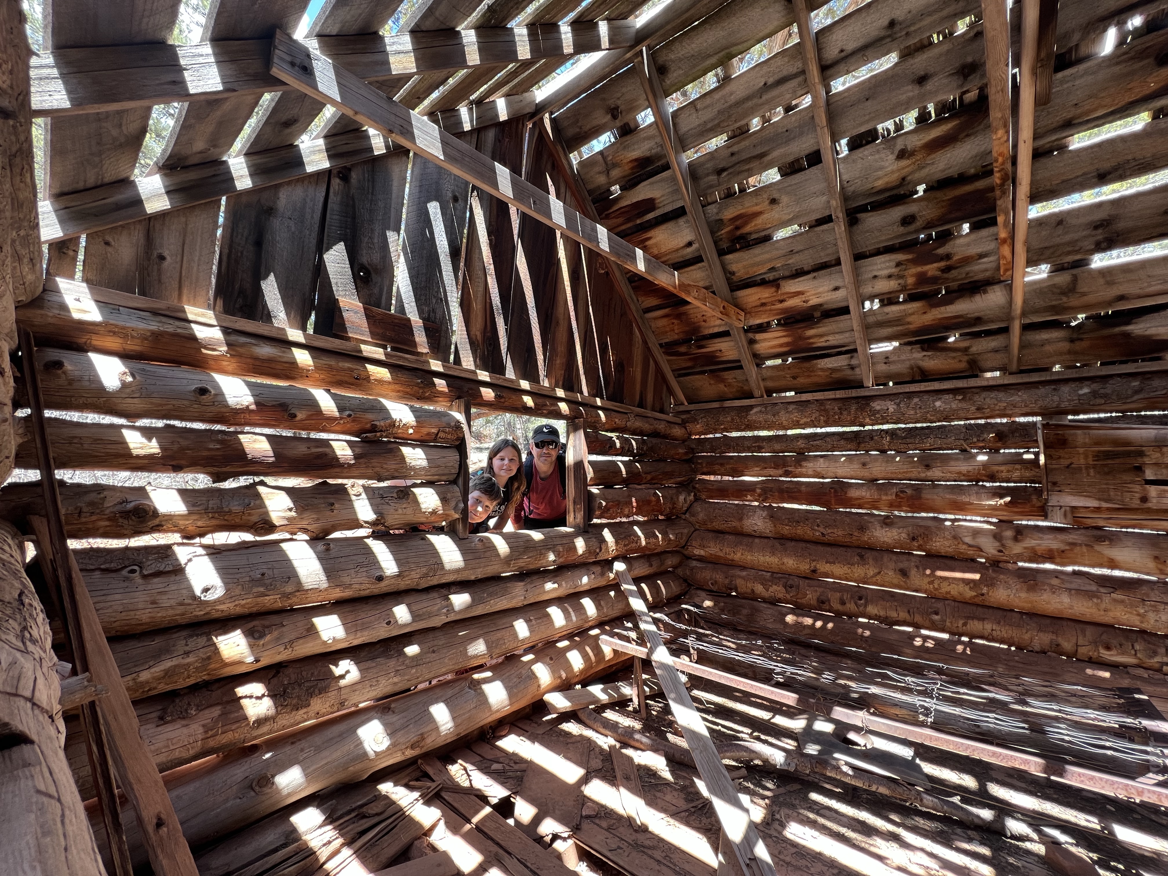 We saw a hole in the giant canyon wall that looked man-made. TJ hopped out & read the sign – the holes were cut to let in air & light and carry-out rubble as they worked on it).