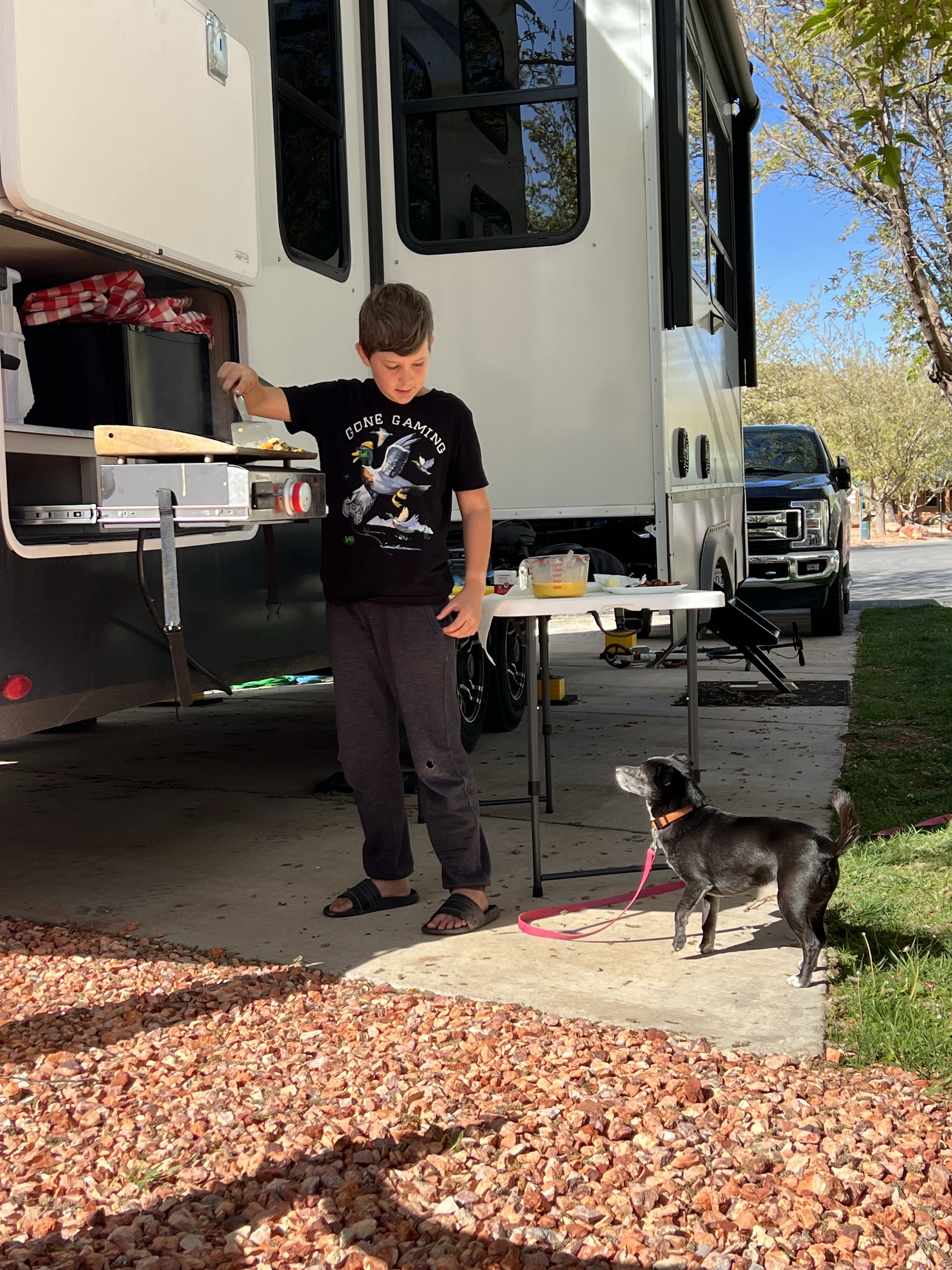 TJ helped our new neighbor get his trailer unhitched from his truck. I spent 8 hours writing & editing pictures. And, we did a little research on our next stop: Bryce Canyon!