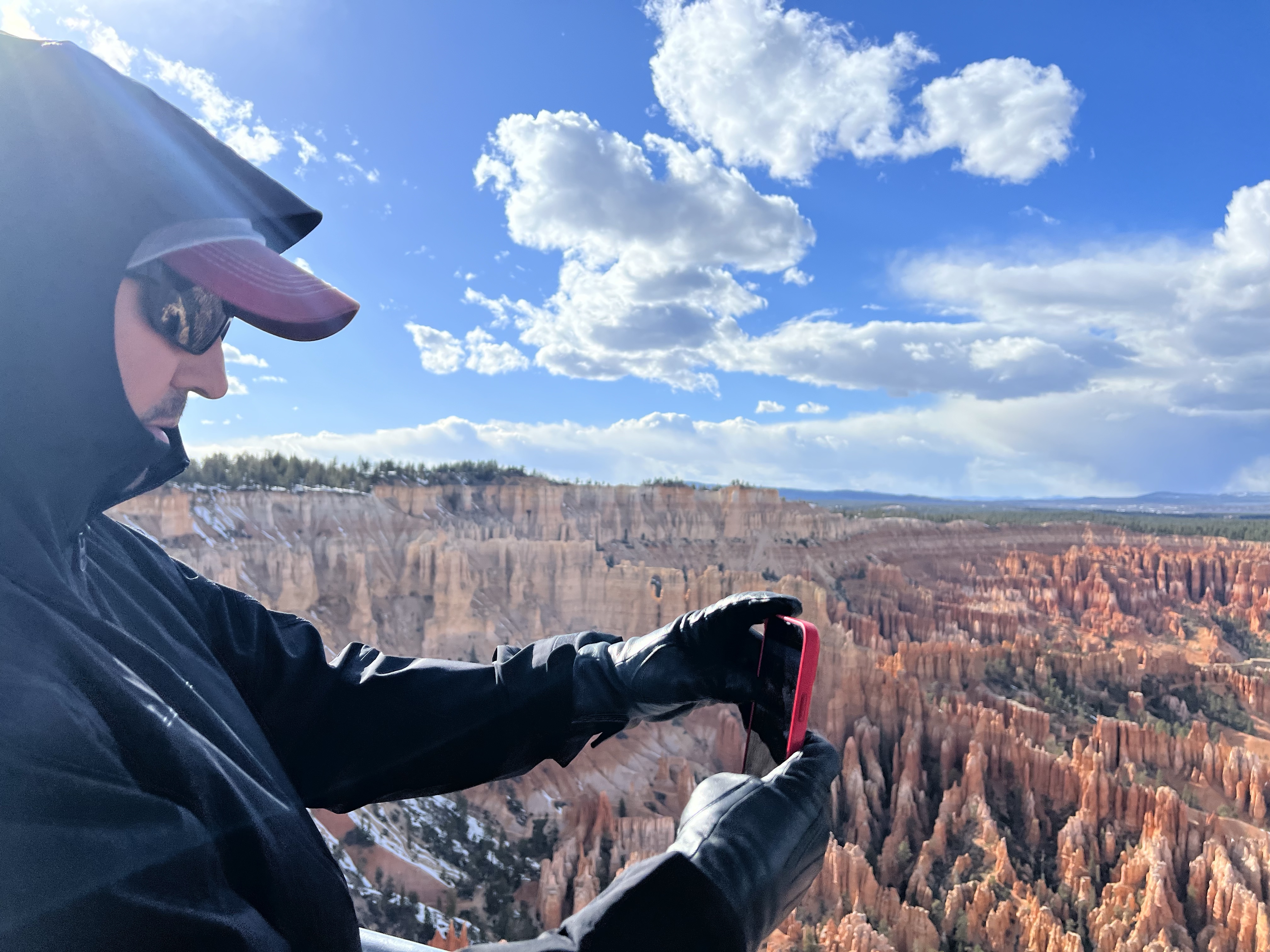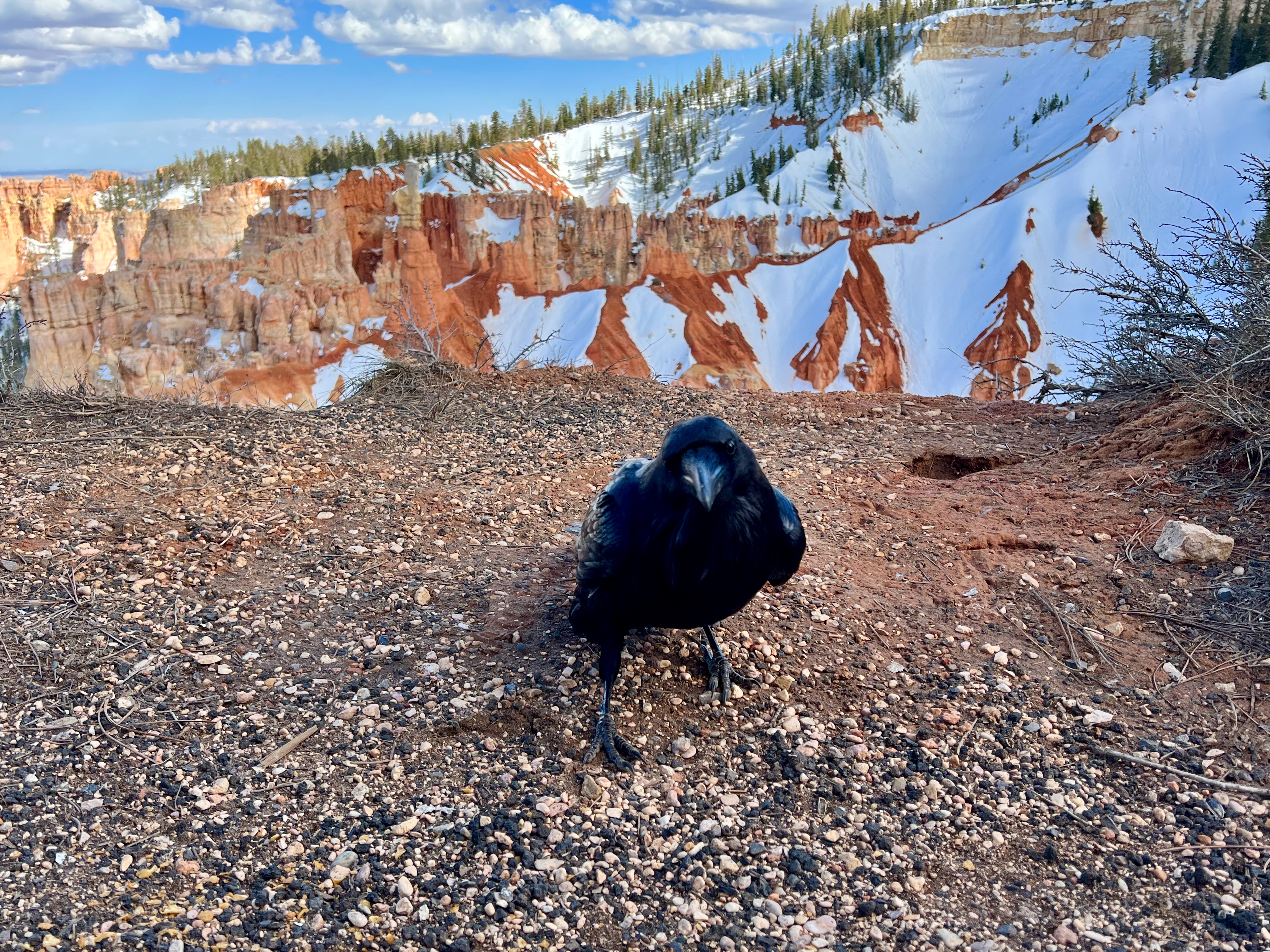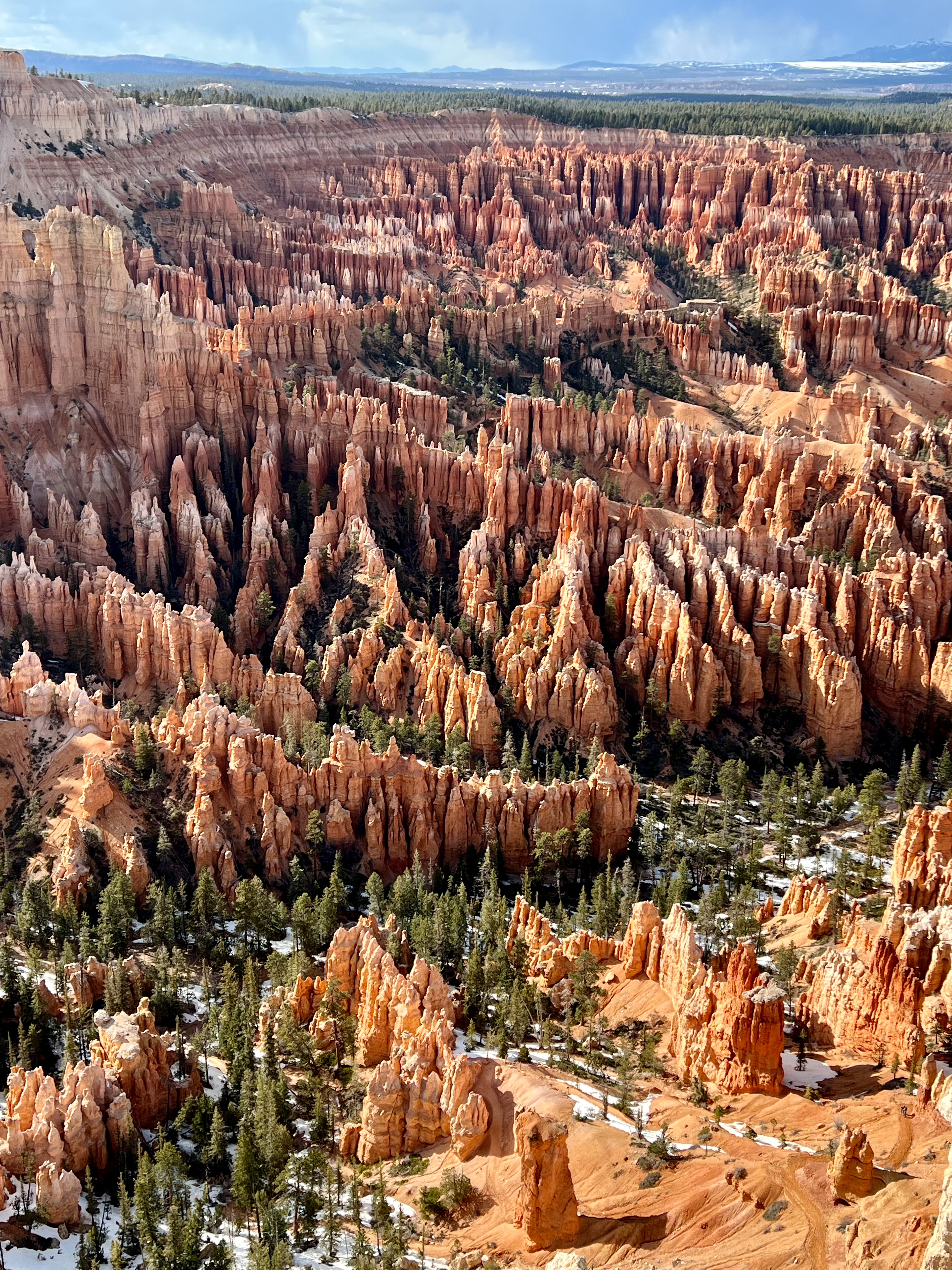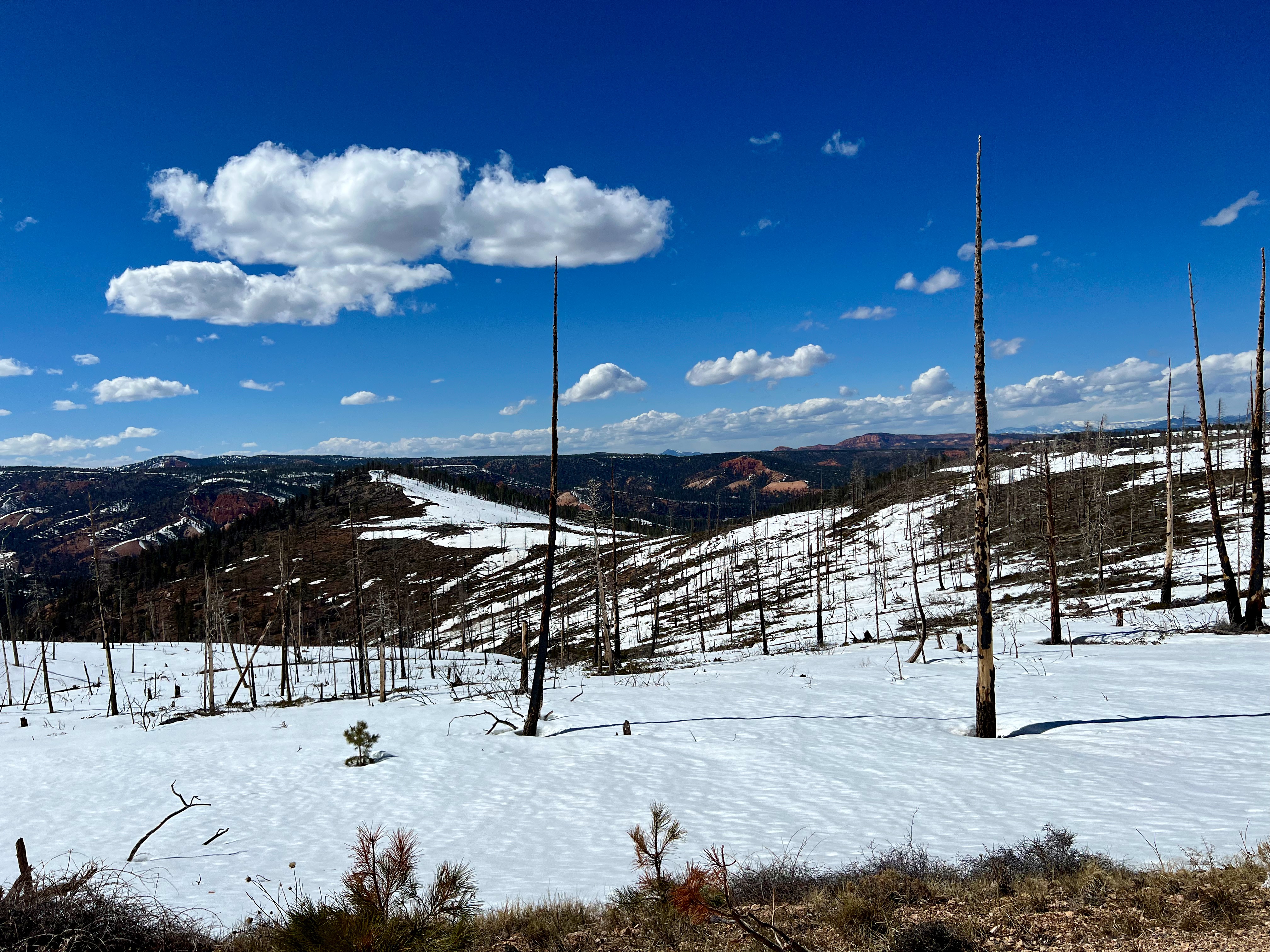 We then drove into the park to do our usual pre-hike park drive-thru. This has worked out so well for us to acquaint ourselves with the park, talk to a ranger, look at a map, & plan hikes for the next few days. We were all shocked at the amount of snow! Part of the park is still closed & some of the trails are as well. We drove all the way to Ponderosa Canyon, which is the farthest into the park you can get right now. From there, we made our way back, stopping at all the lookouts (and playing with the cutest Husky who was having the time of his life in the snow).