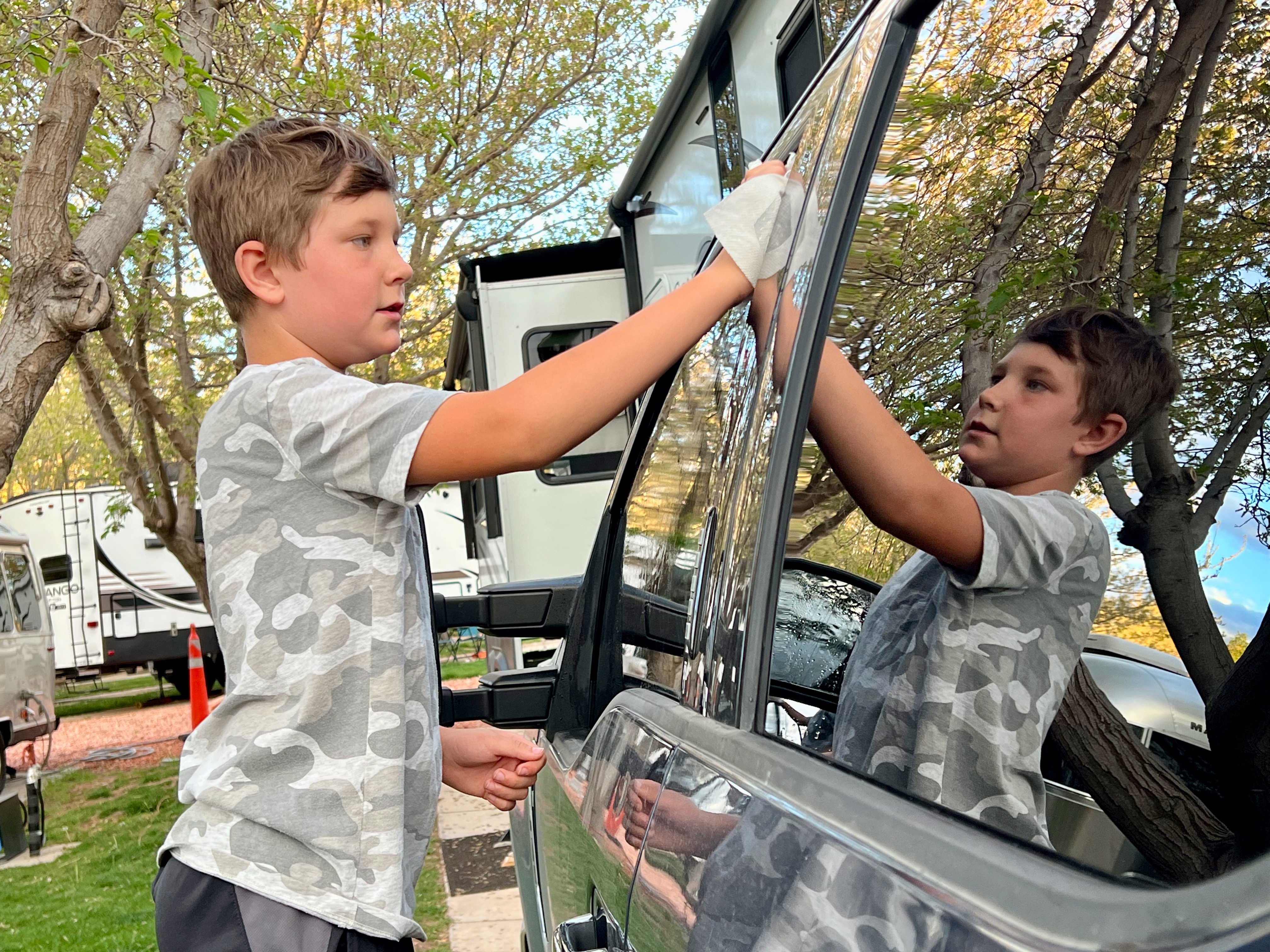 The trip from Zion to Bryce was a quick 2.5 hours (I didn’t even have to pack snacks!). TJ & I both remembered how stunned we were at Utah’s beauty when we moved to CA, & we got to be stunned all over again today, only this time with the kids. Thankfully, before we left, Chase cleaned our truck windows – perfect timing to enjoy these beautiful Utah views!