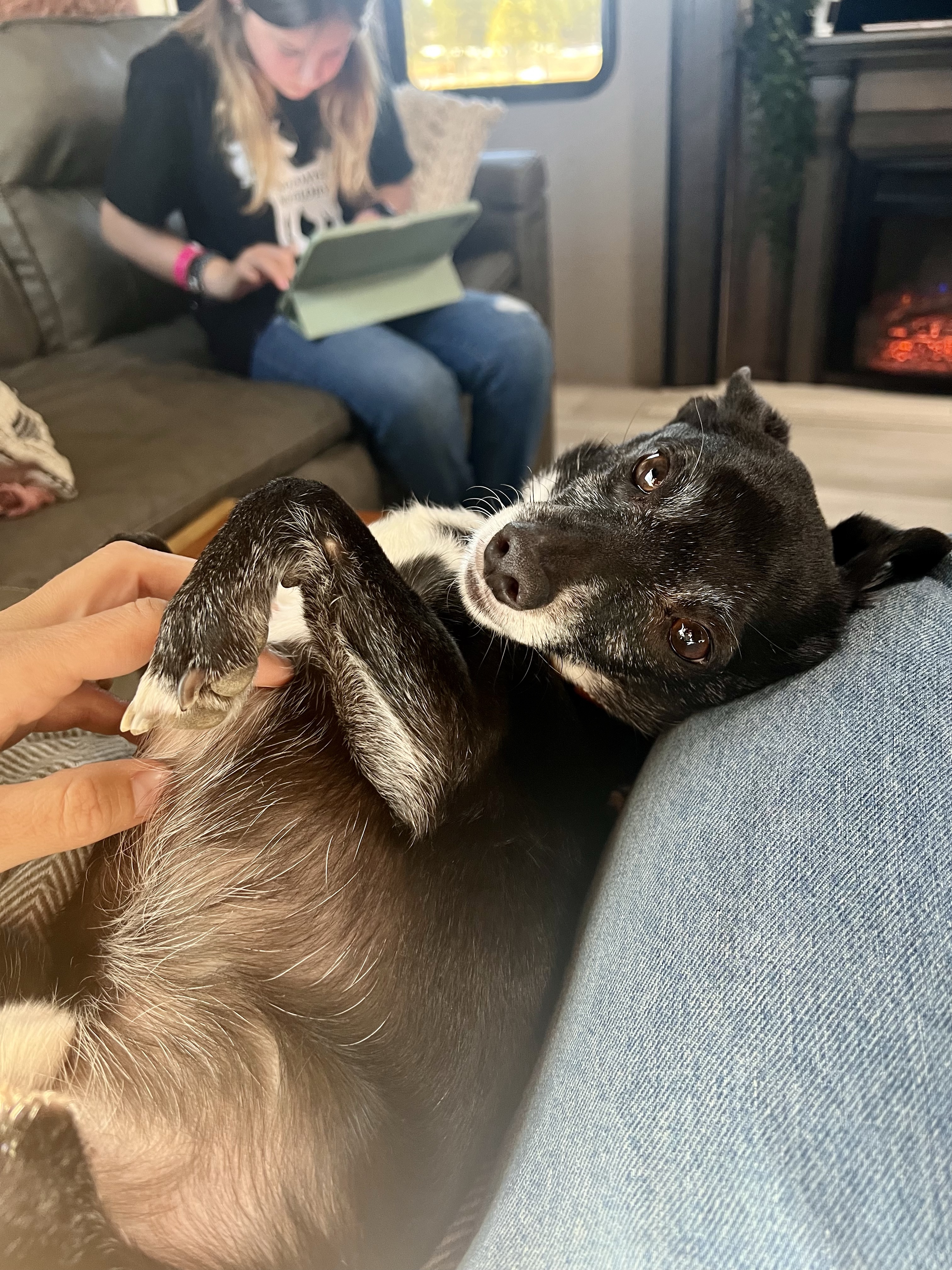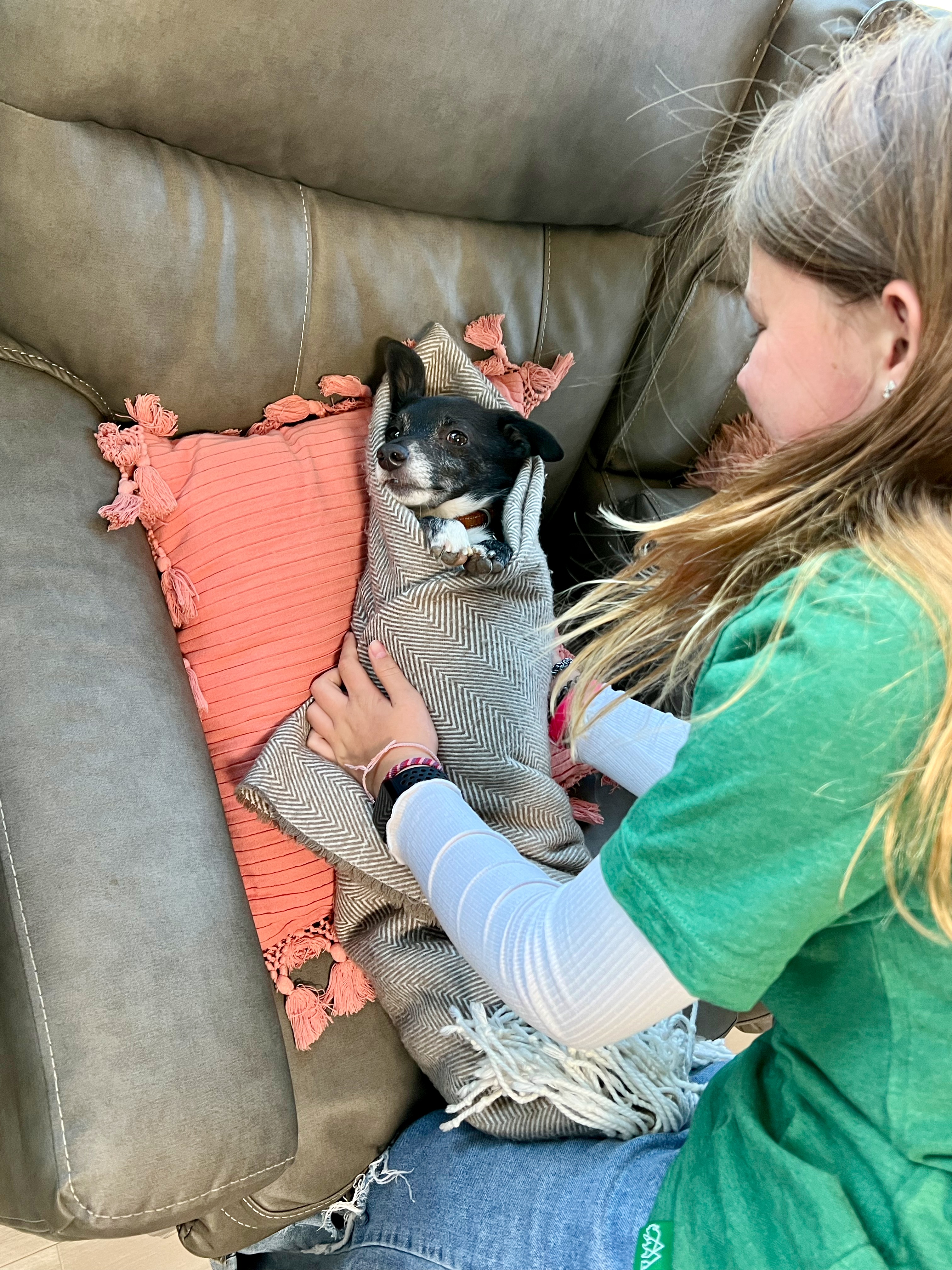 After that, we stayed home to relax, play games, do laundry, and prep for tomorrow’s travel day. And I cuddled with Stout as much as possible. And Sofina swaddled Stout for extra cuddles.