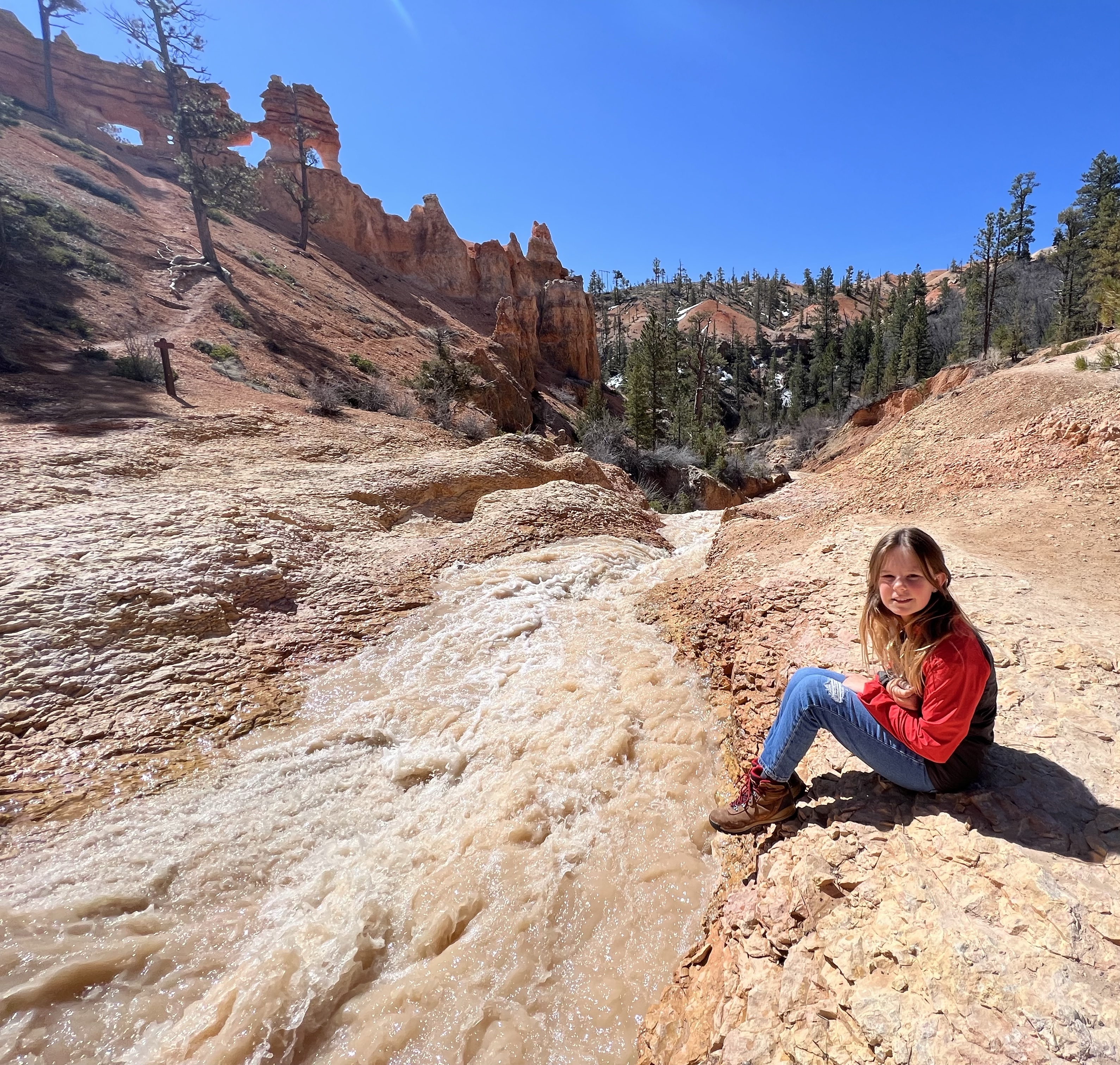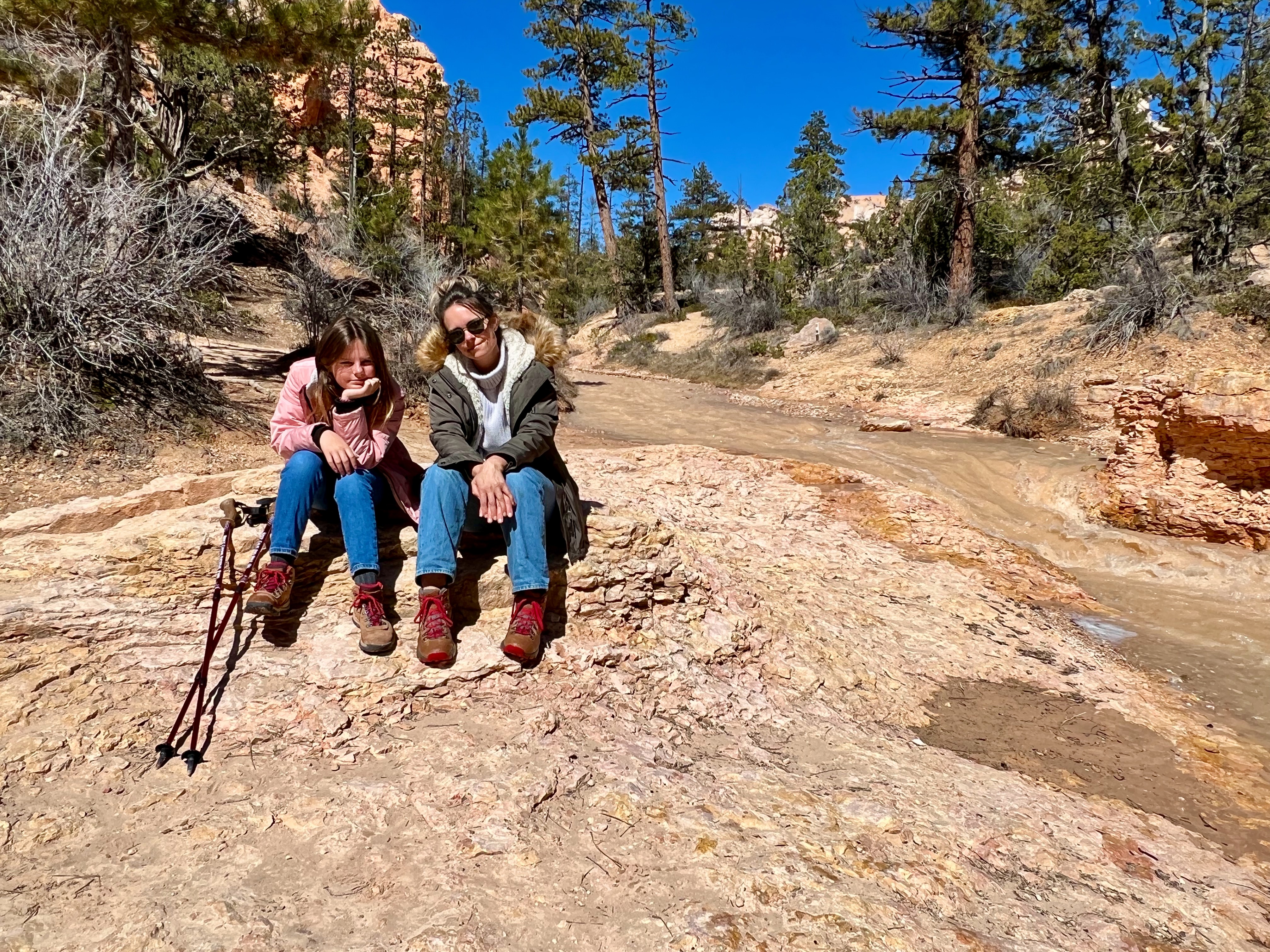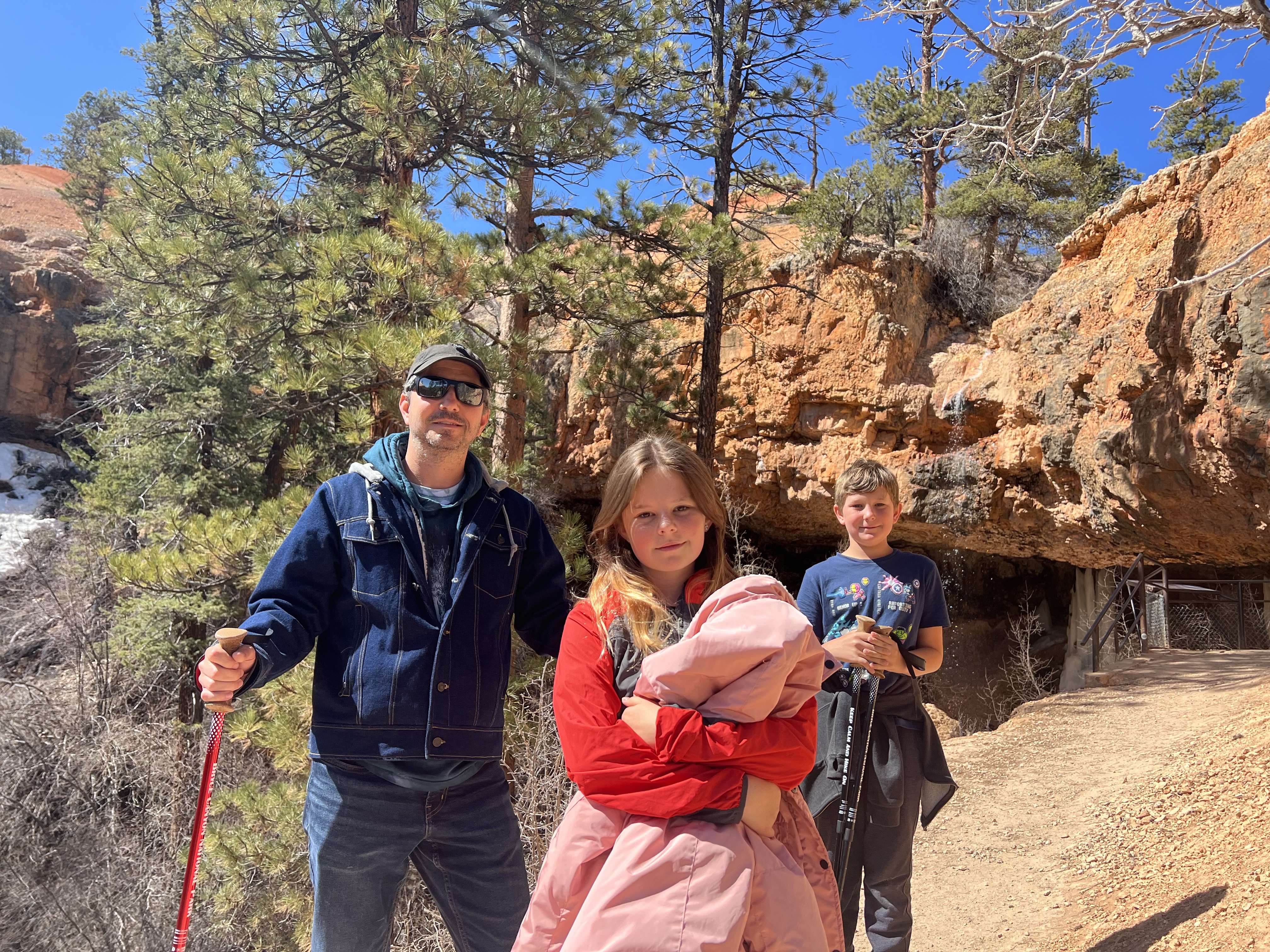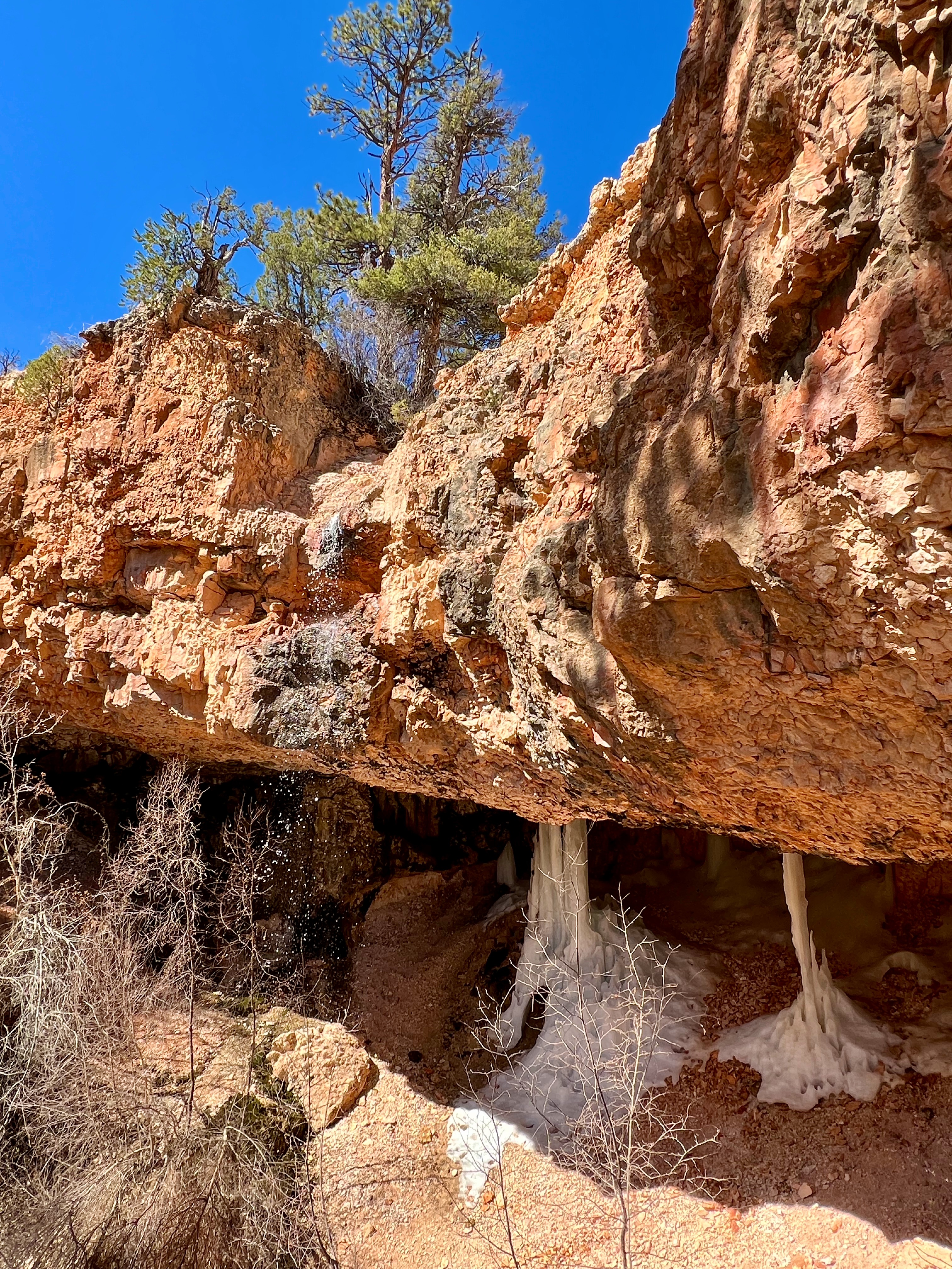 We’re developing a system: hike like mad on day 1 & rest the next day. We couldn’t quite take a full day off, so we drove a little outside Bryce Canyon to try the Moss Cave Hike nearby. It’s an easy, 1-mile hike, & we got to see a cave with ice stalagmites and a waterfall.