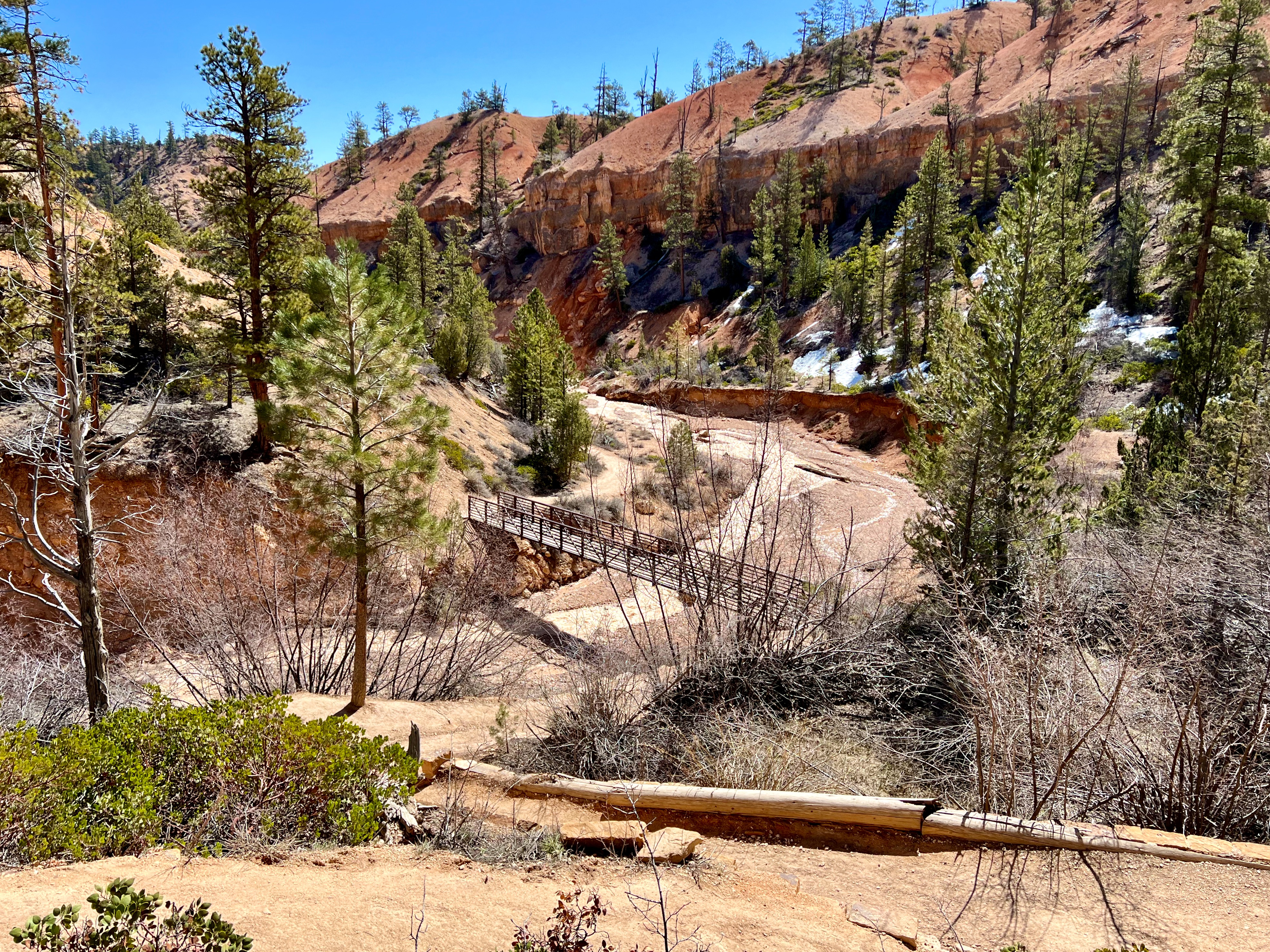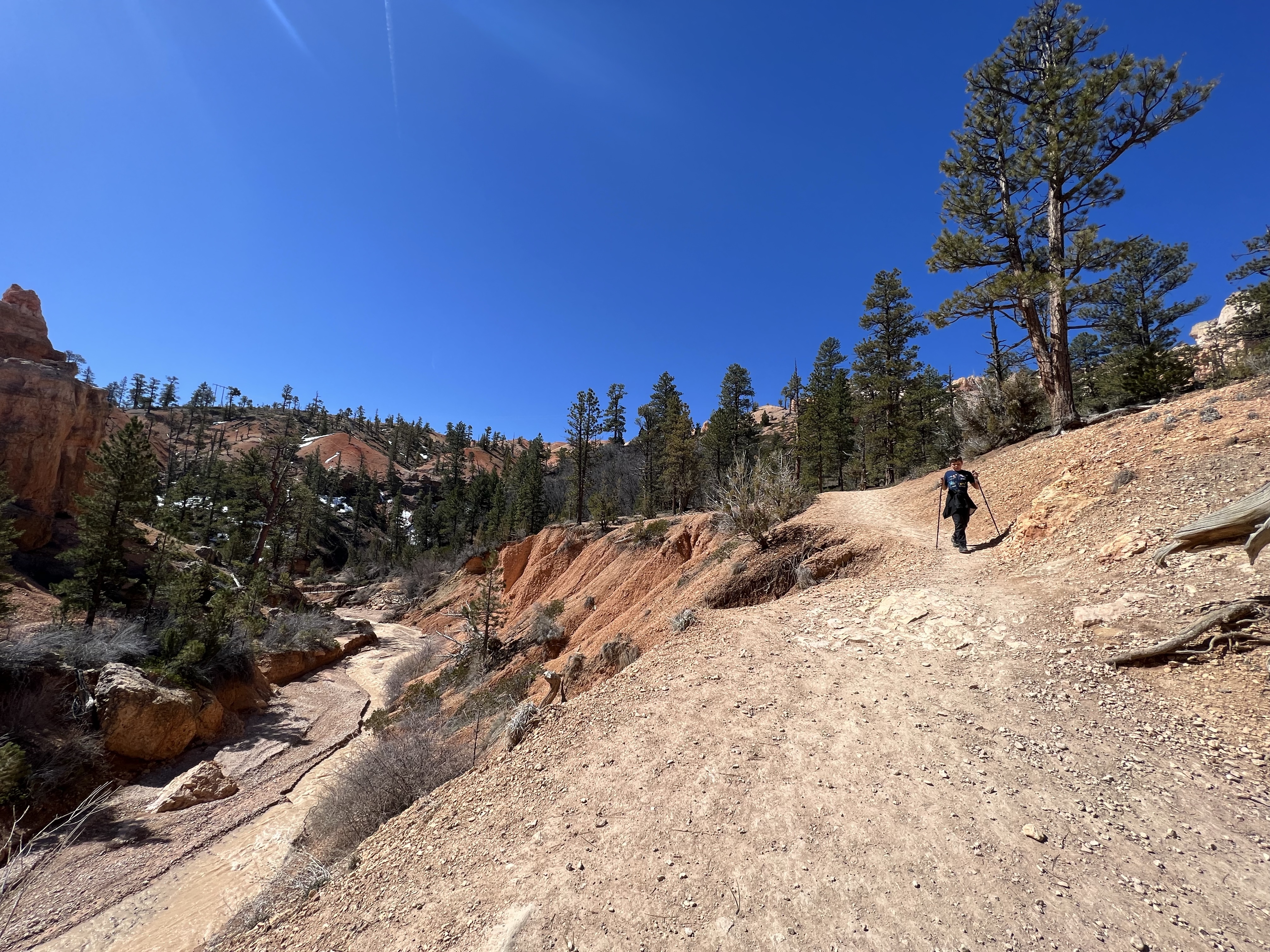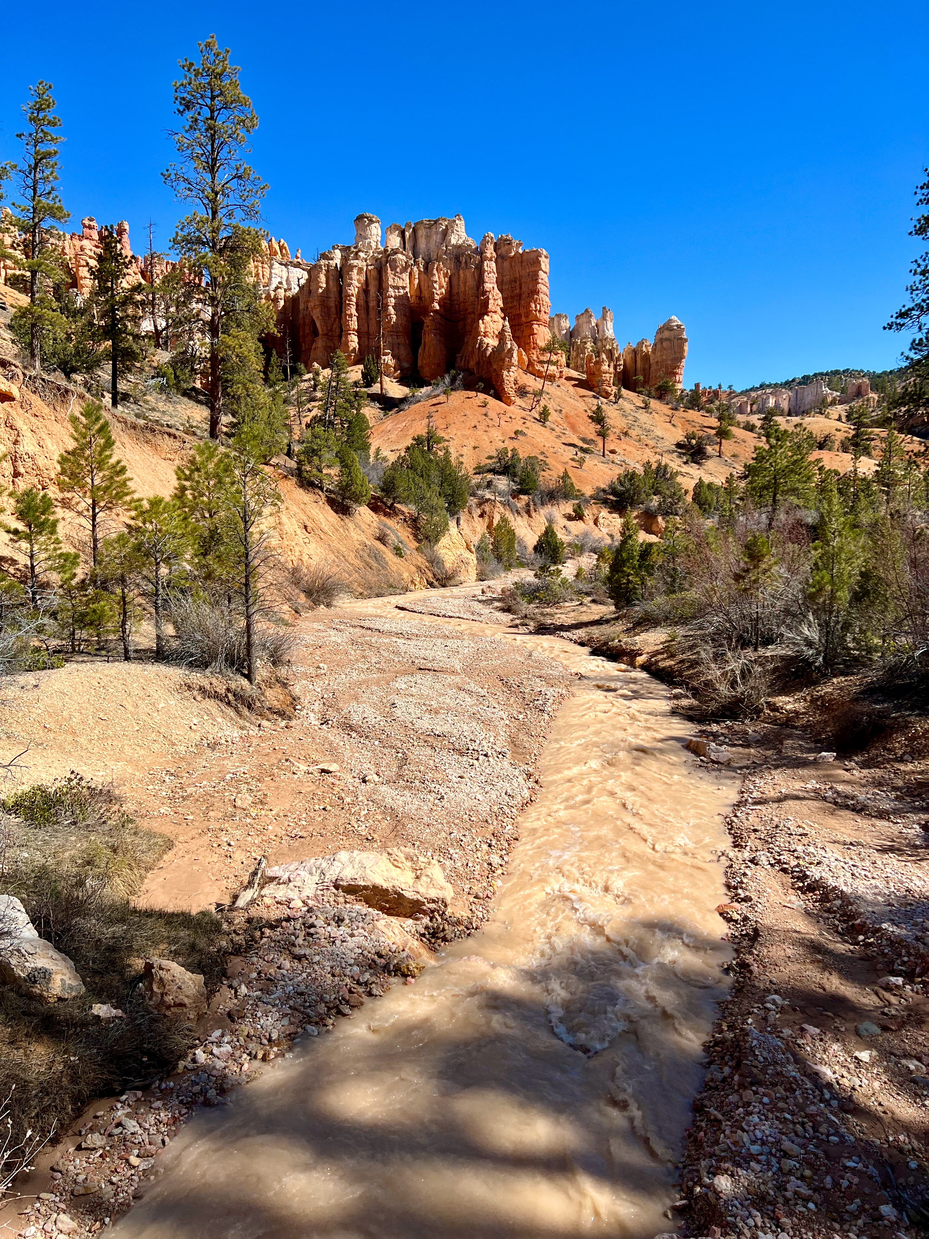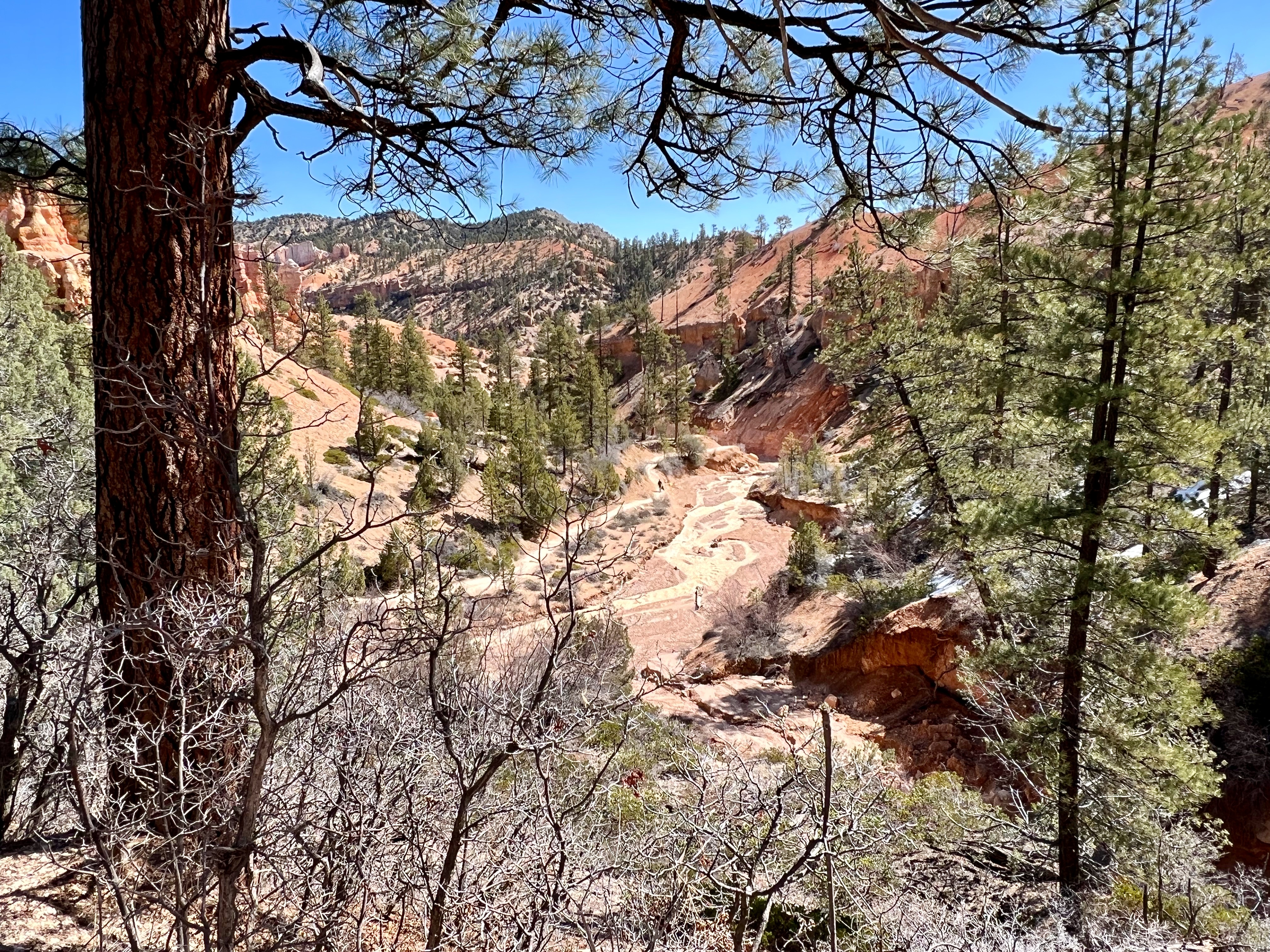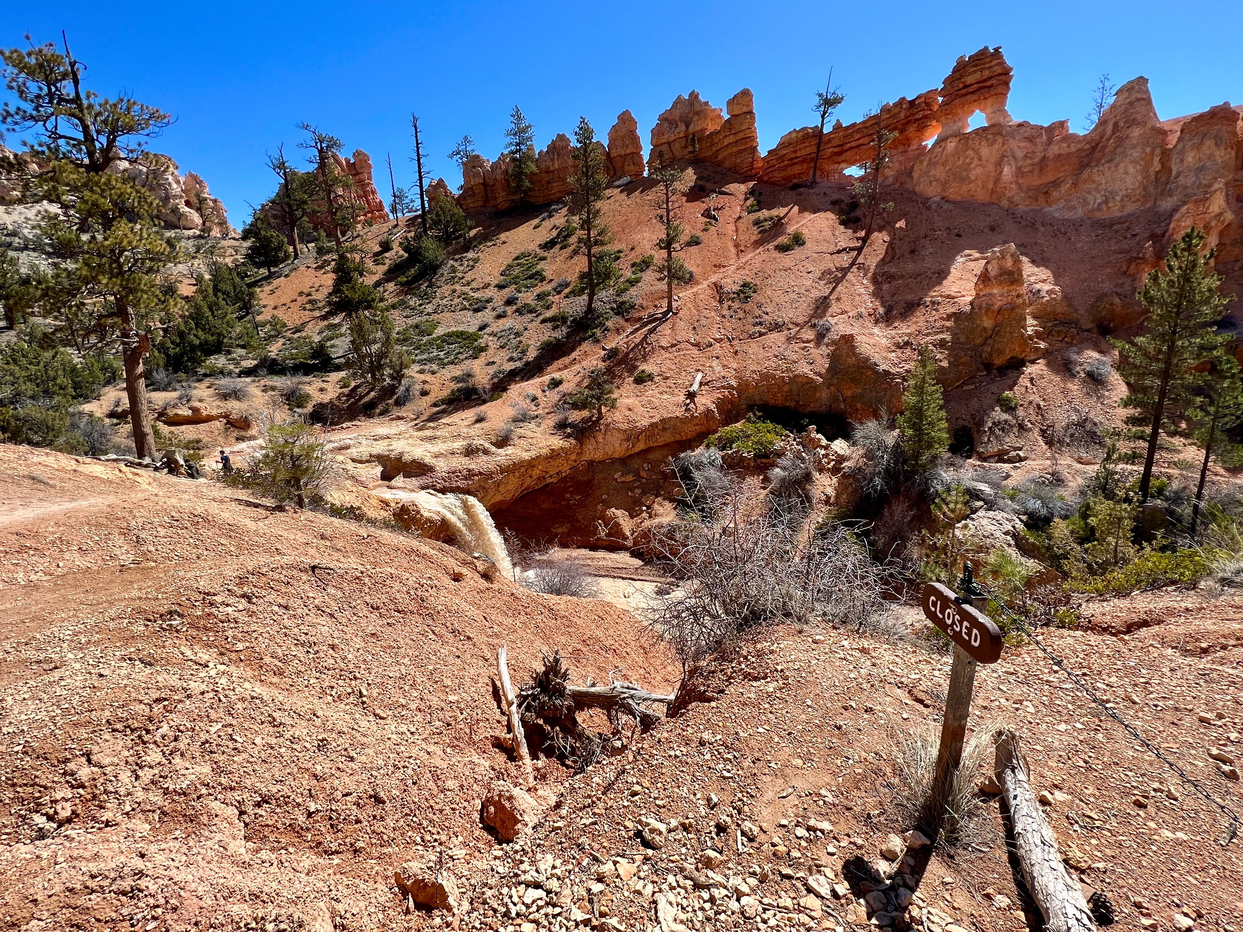 We’re developing a system: hike like mad on day 1 & rest the next day. We couldn’t quite take a full day off, so we drove a little outside Bryce Canyon to try the Moss Cave Hike nearby. It’s an easy, 1-mile hike, & we got to see a cave with ice stalagmites and a waterfall.