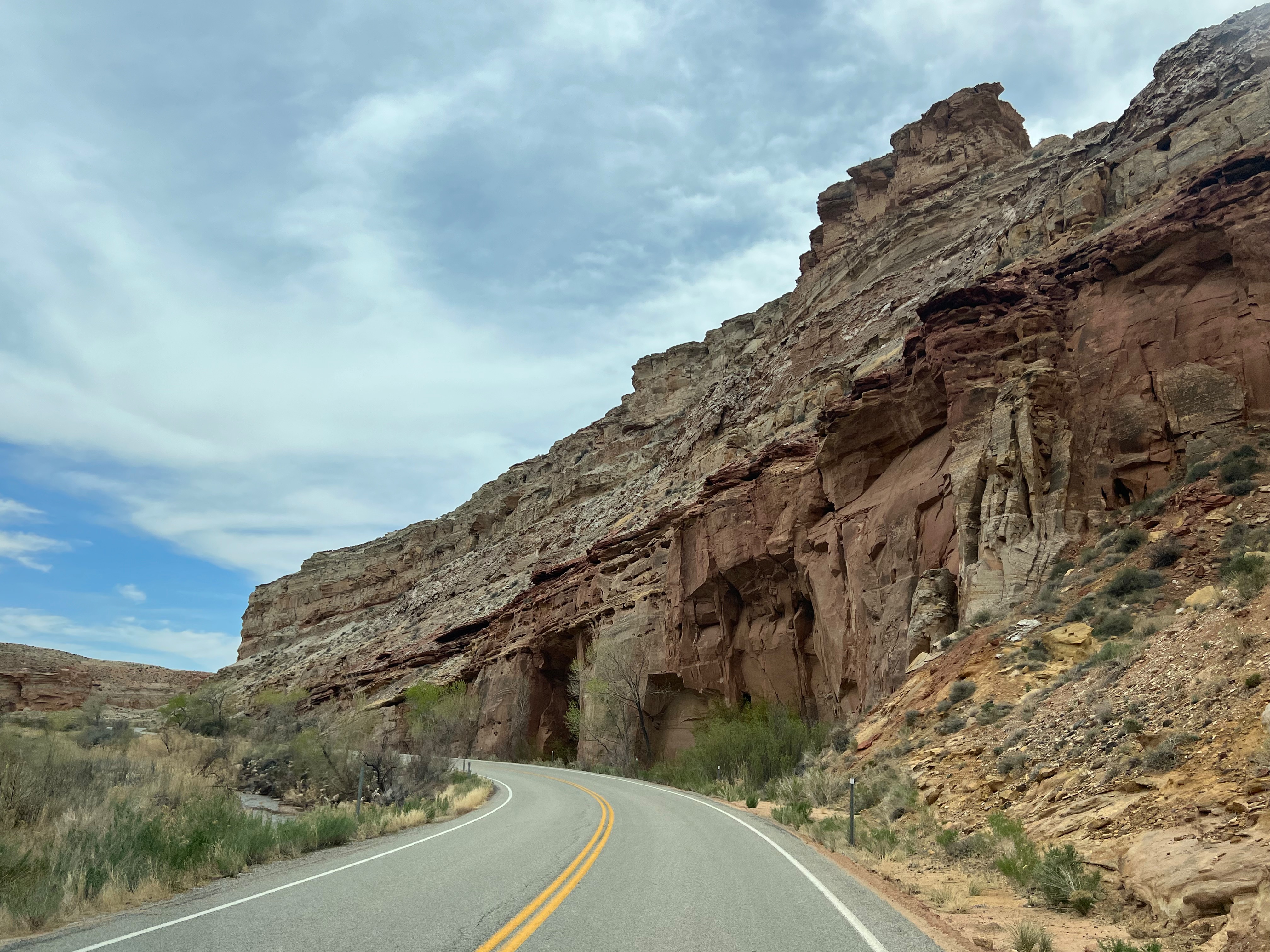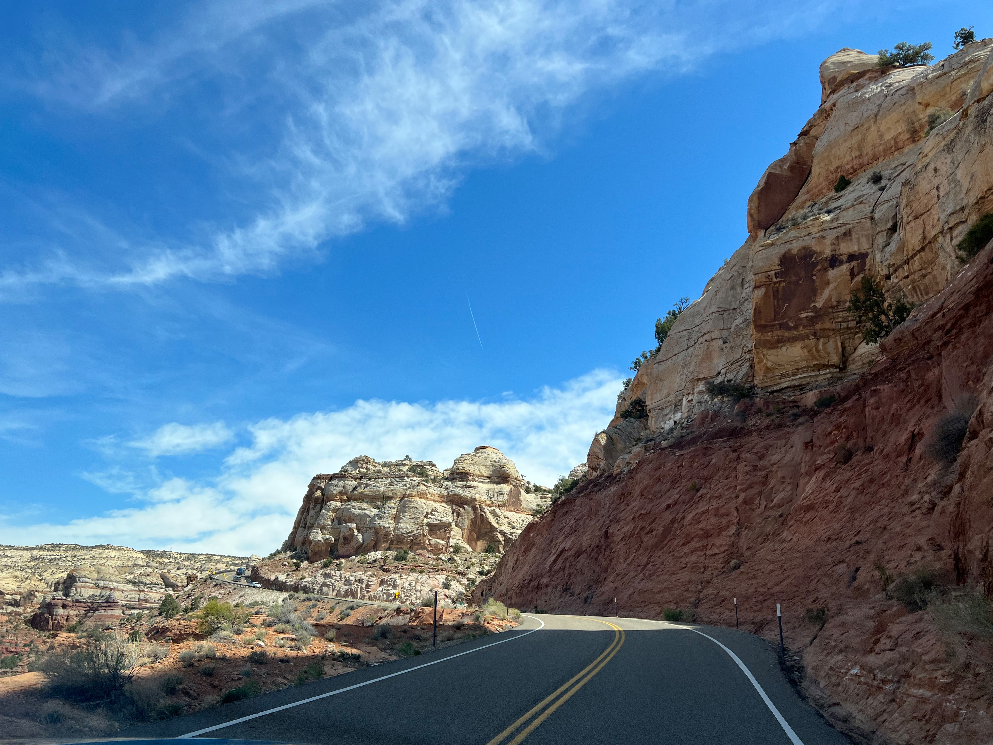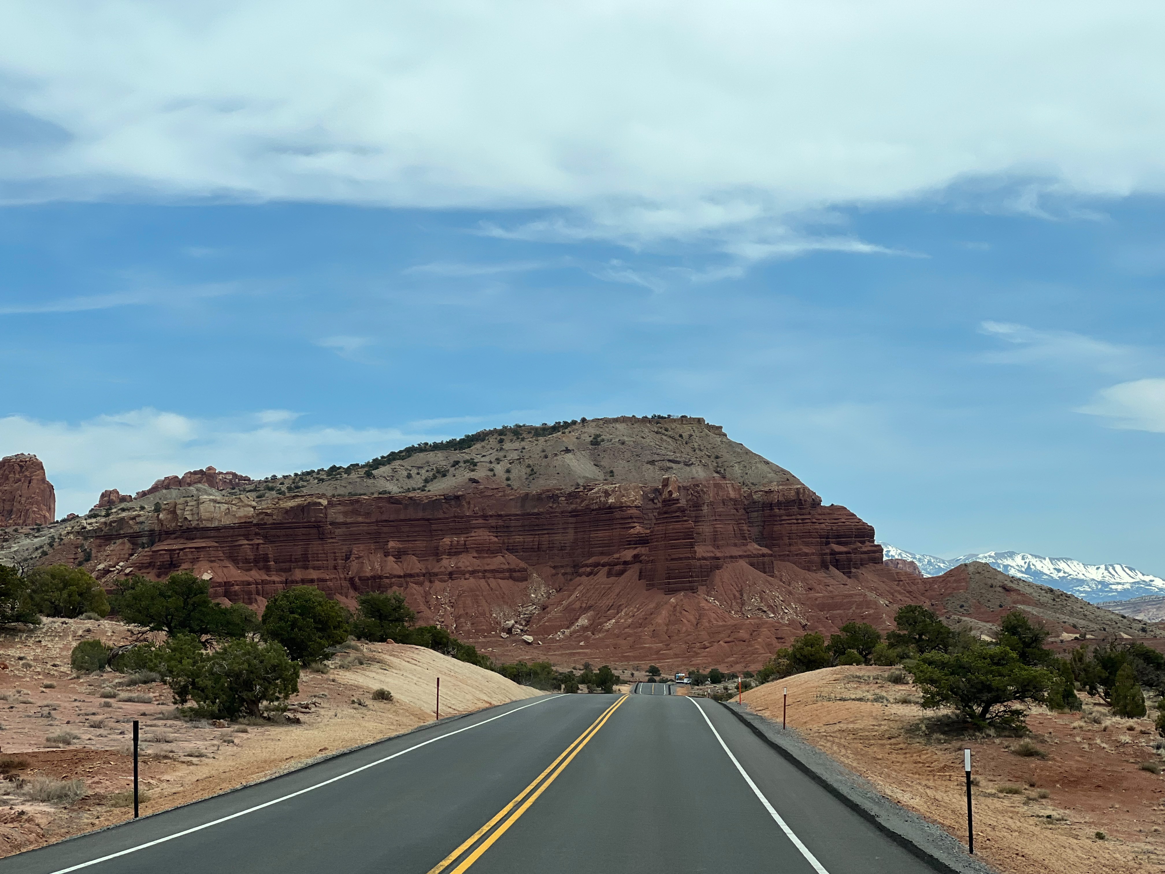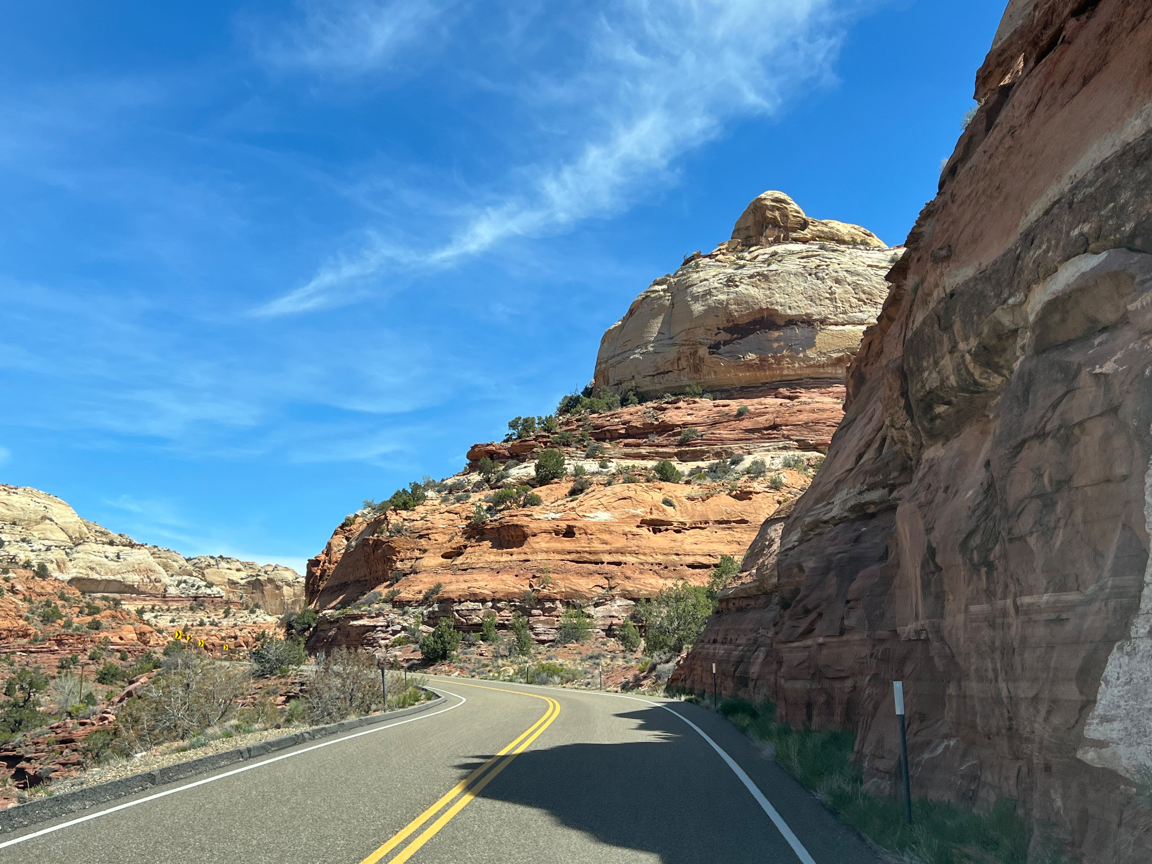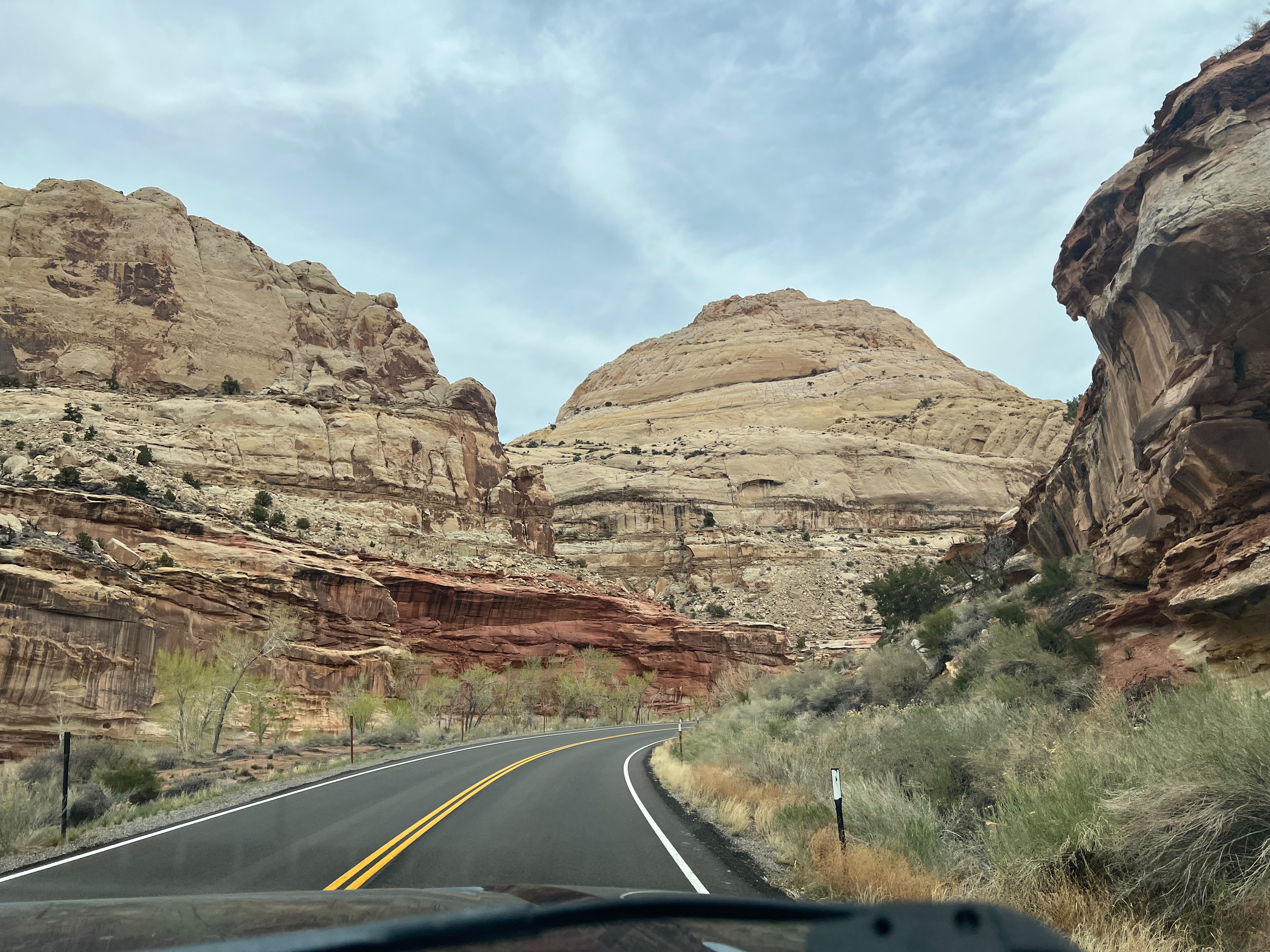 The next beautiful spot we drove through was Capitol Reef National Park. The mountains were massive again, and the road curved along, so close to the walls.