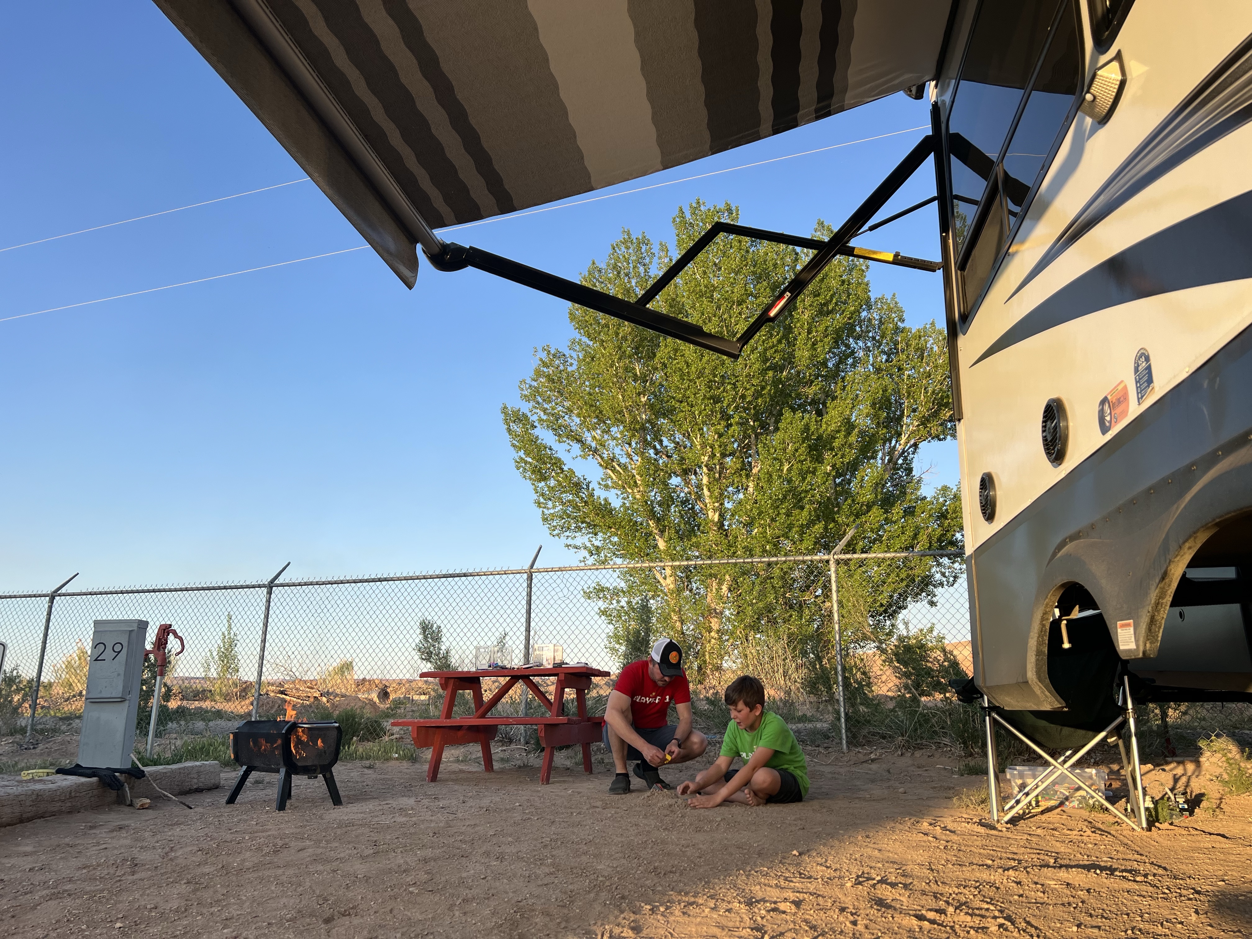 Even though we didn’t want to go out, we were all fidgety, not knowing what to do with ourselves at home. The boys set up camp outside, moving the picnic table, getting our comfy camp chairs out, and setting up the fire pit. TJ took a nap. The kids were on & off their computers.