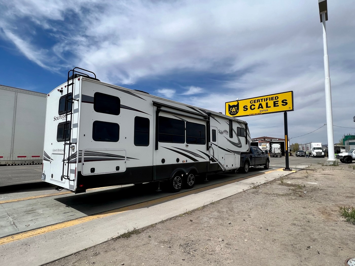 On our way to Moab, TJ mentioned that we should weigh our rig sometime soon. I looked up CAT Scale locations, and one popped up at the next exit on the freeway, in the town of Green River. TJ pulled onto the 3-pad scale following the directions online. We weighed just under 25,000 lbs total (truck & rig). We laughed that we added another first on an already hectic day, including moving camp and closing on a duplex in Ohio!